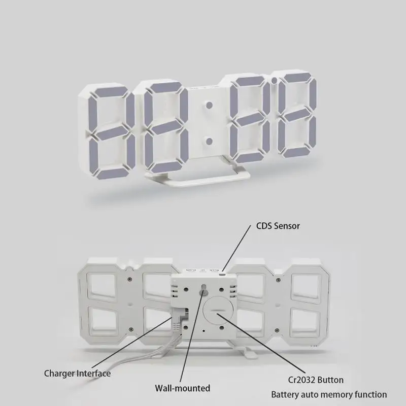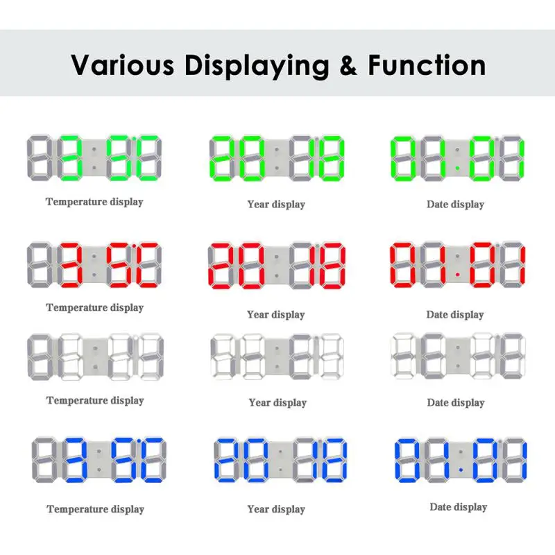 3D светодиодный Будильник, цифровые часы для спальни, настольные часы, Висячие настенные часы, 12/24 часов, календарь, термометр, домашний декор, подарок