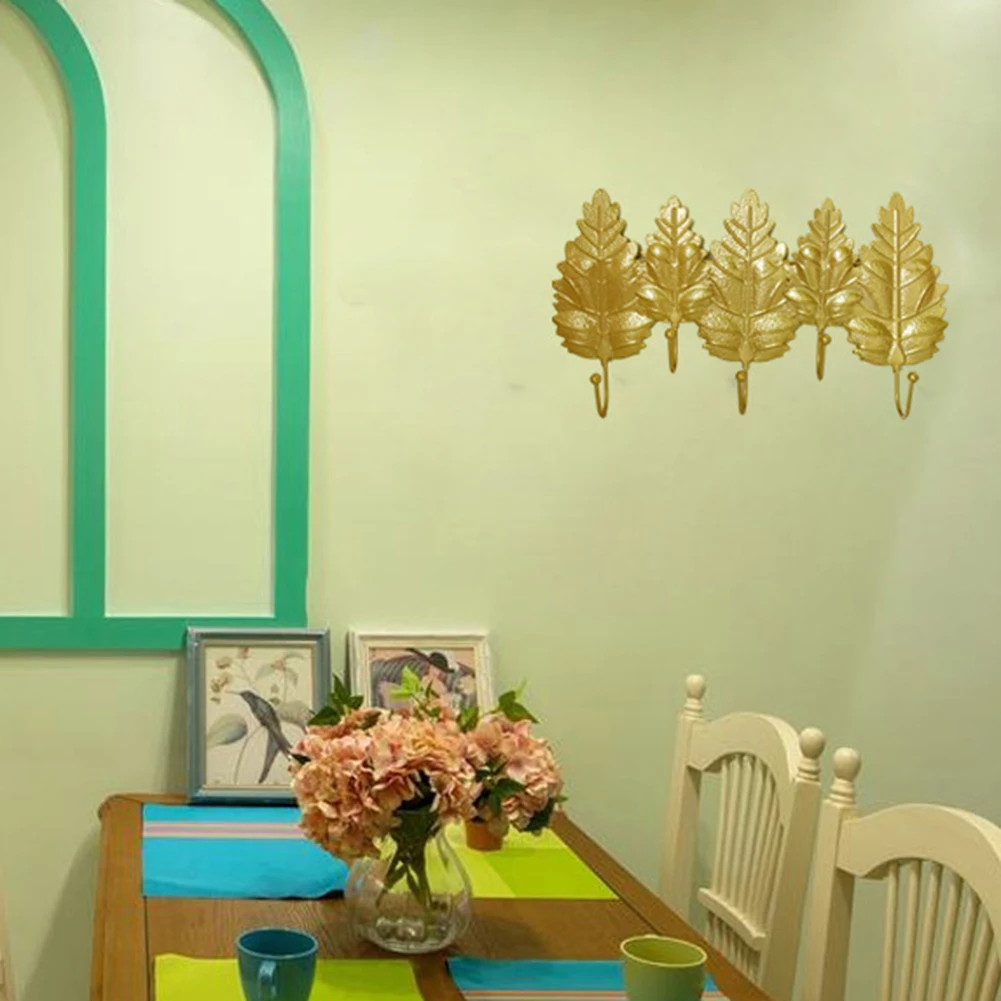 Особенности: дизайн листьев, 5 крючков, орнамент двери, самоклеющийся