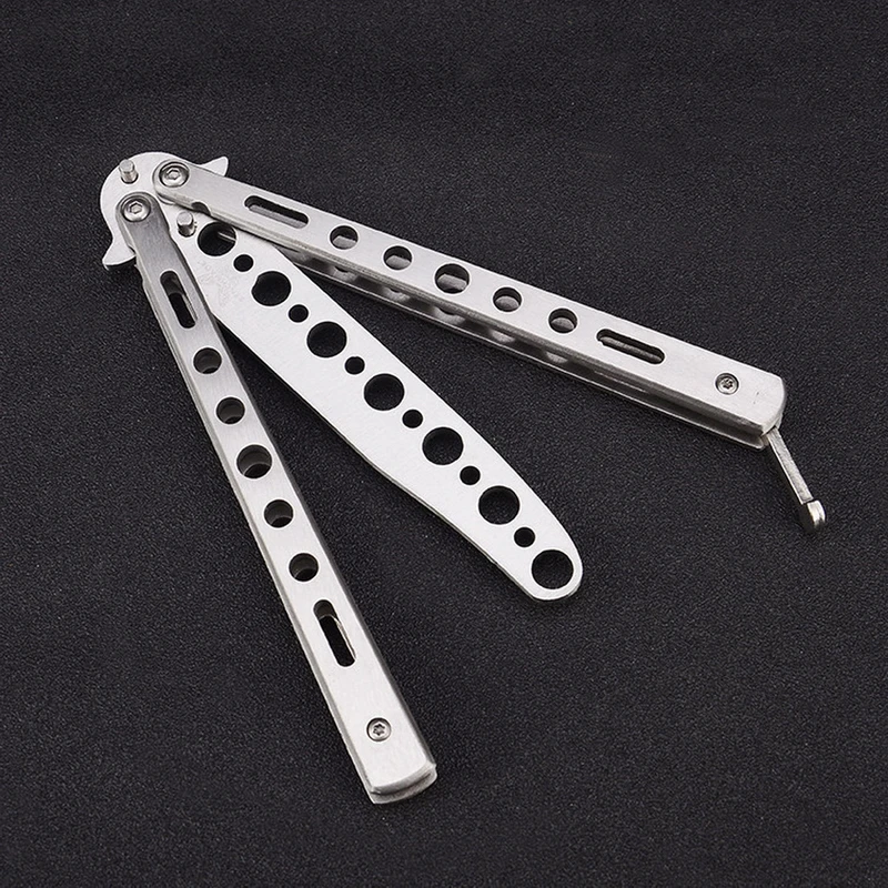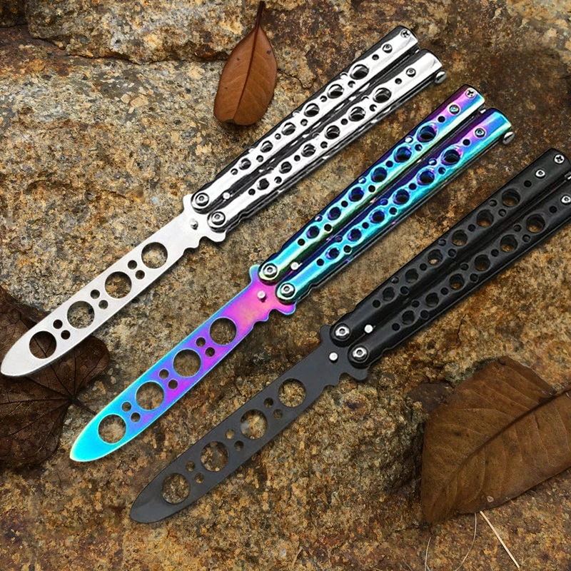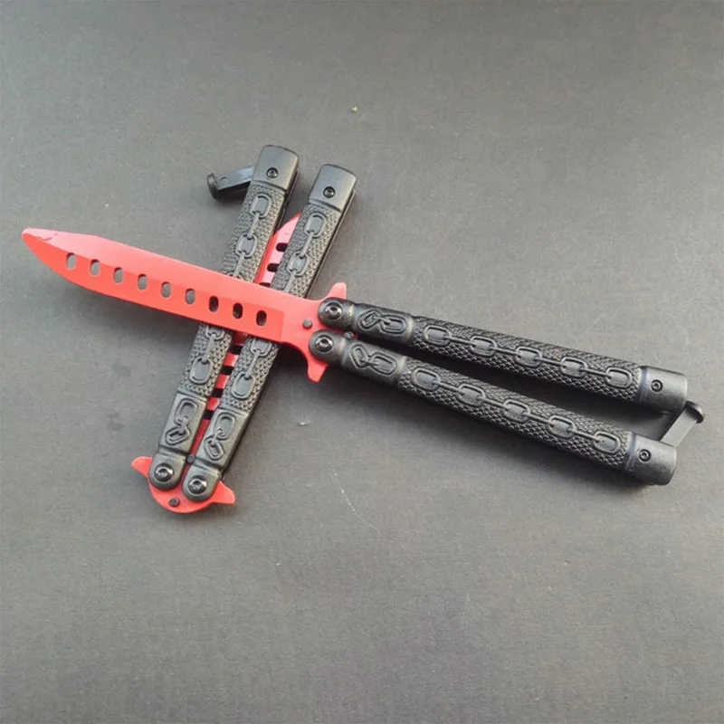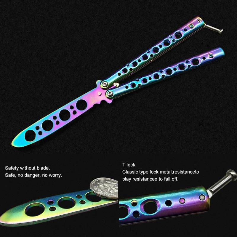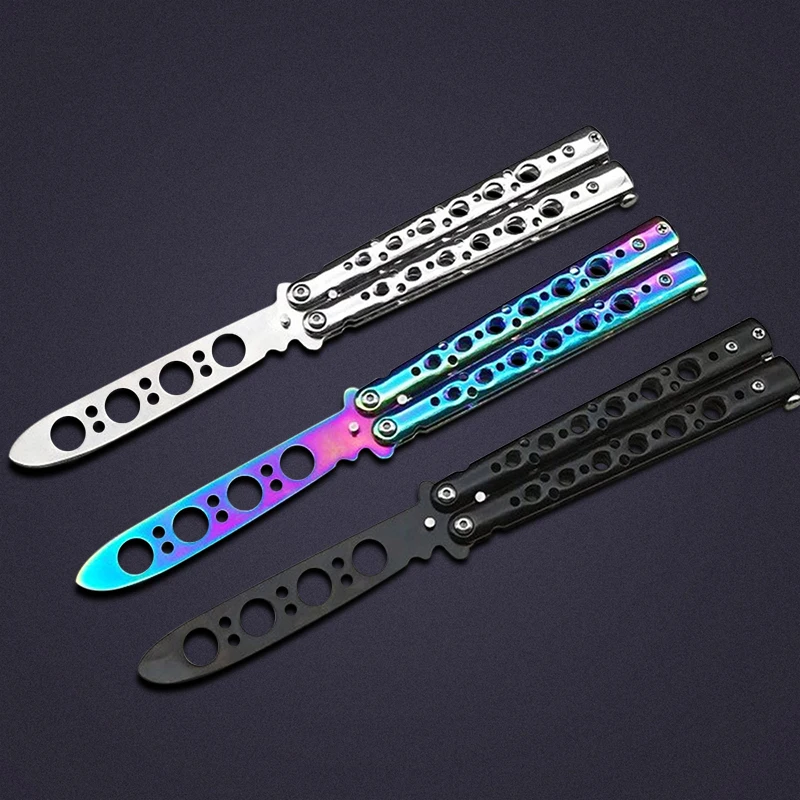 Характеристики: нож из нержавеющей стали, тренировочный нож-бабочка, открытый нож, нож для соревнований, тупой инструмент без лезвия