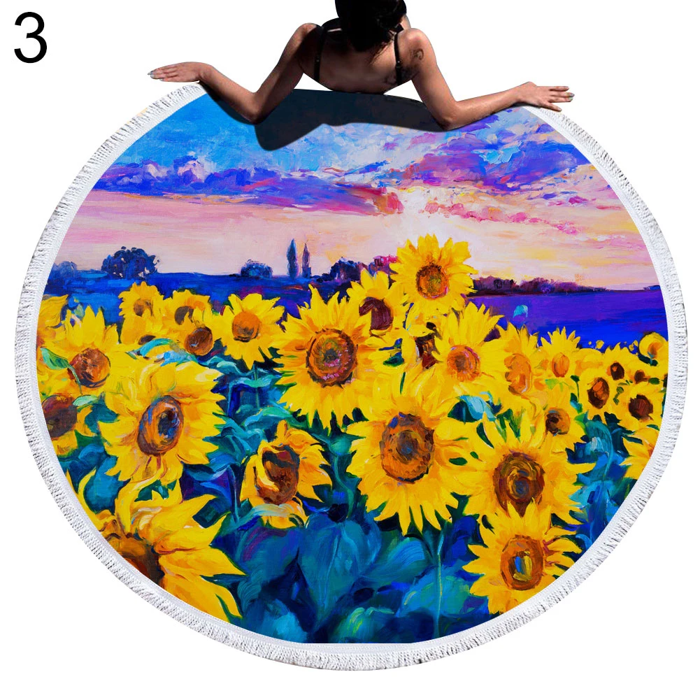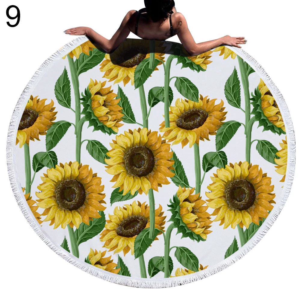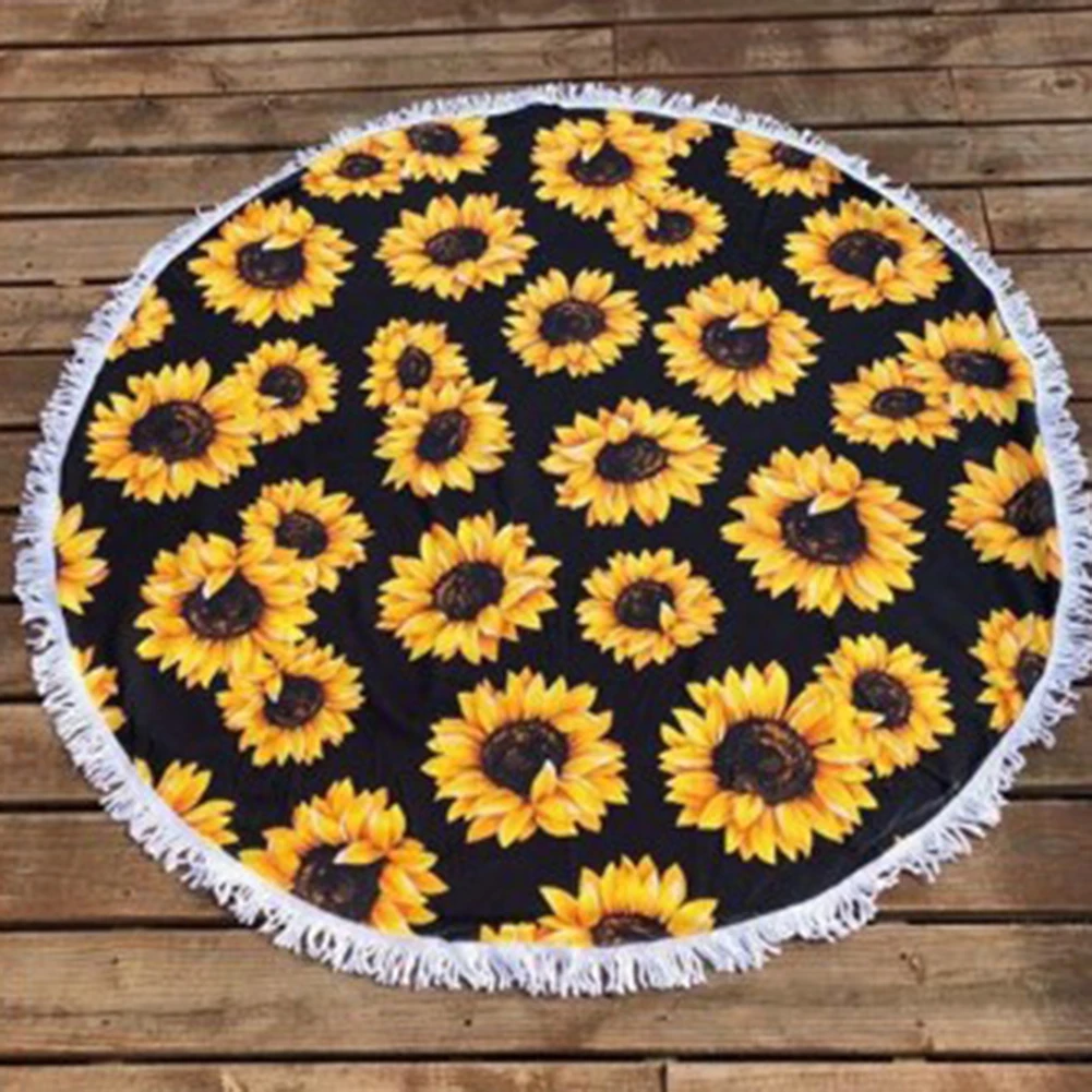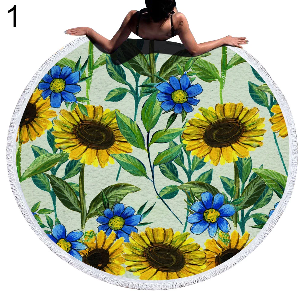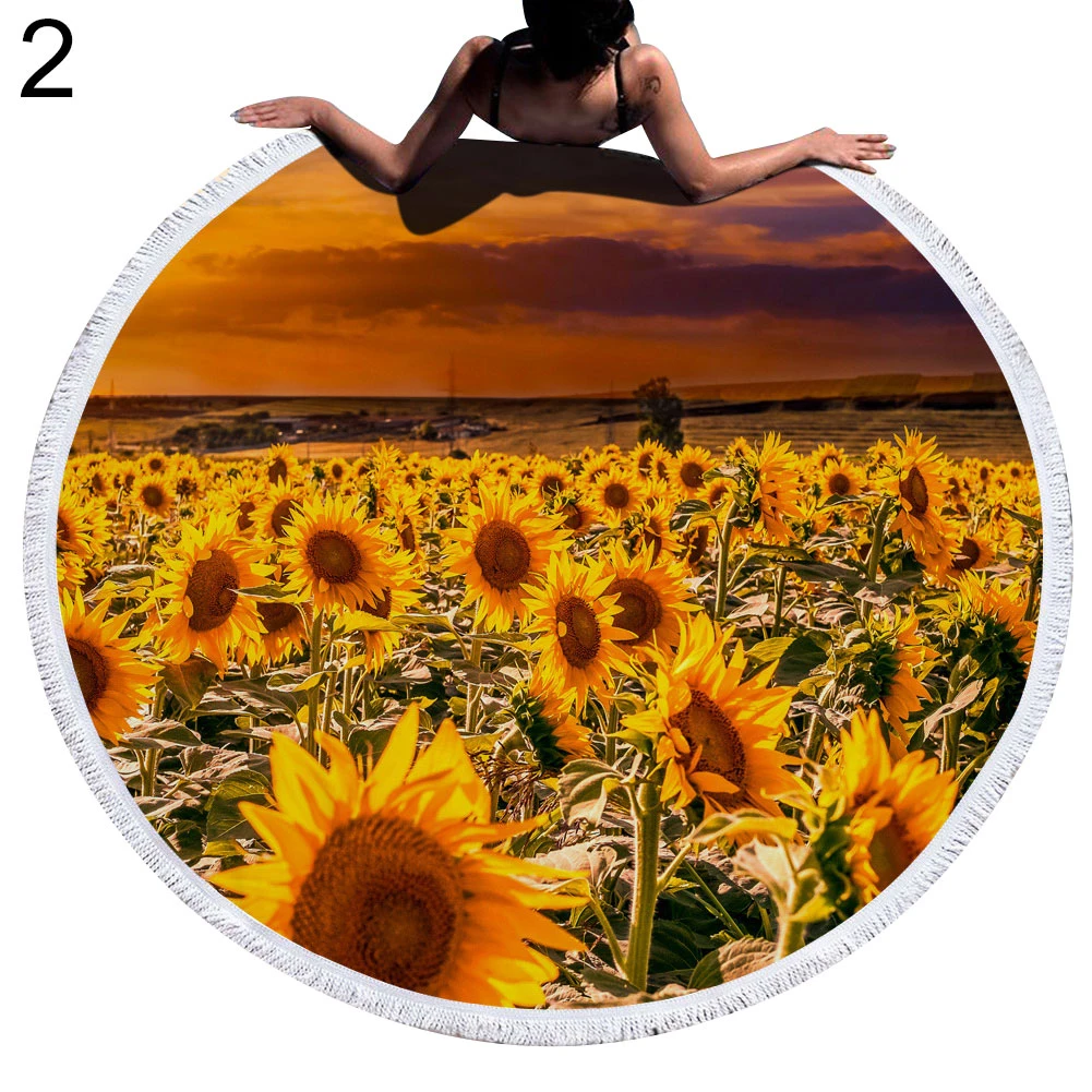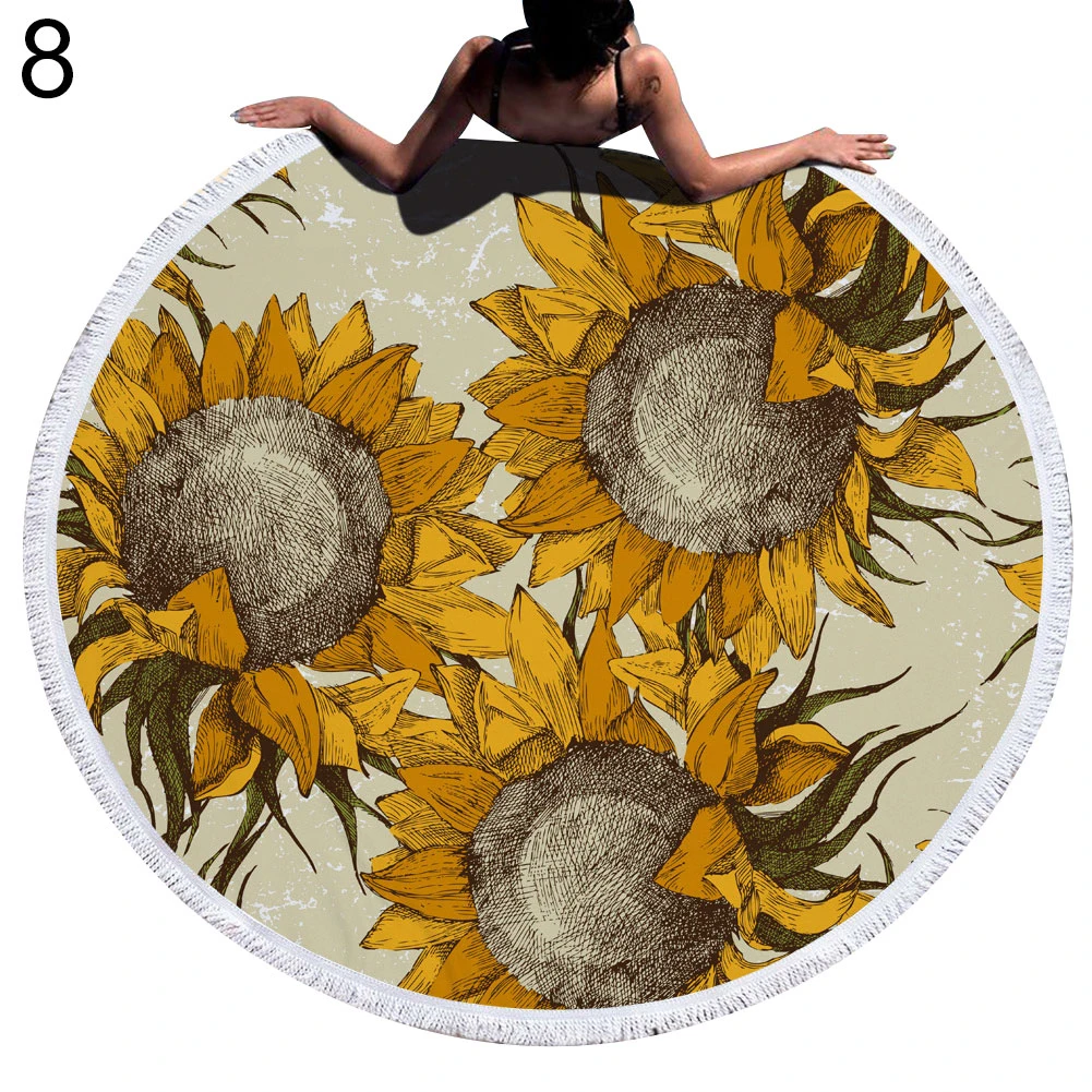 Круглый Подсолнух кисточки Быстросохнущий Открытый Летний Пляжный коврик полотенце