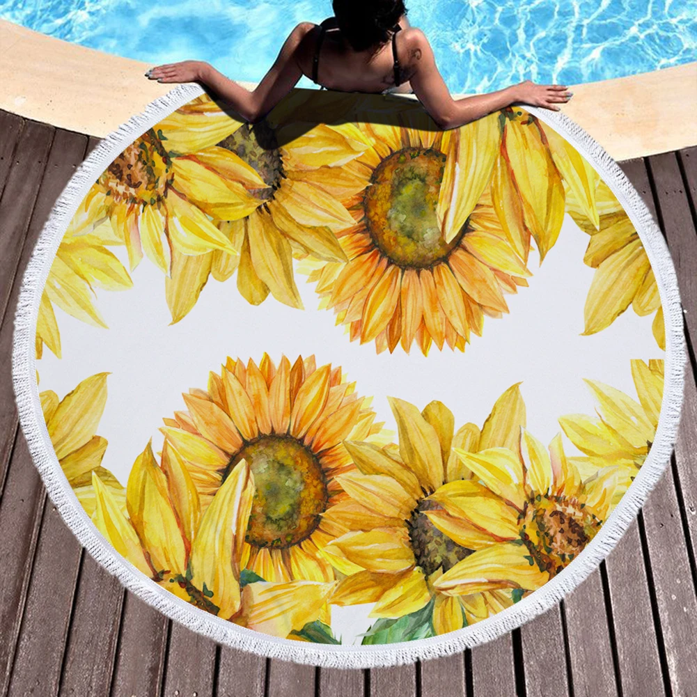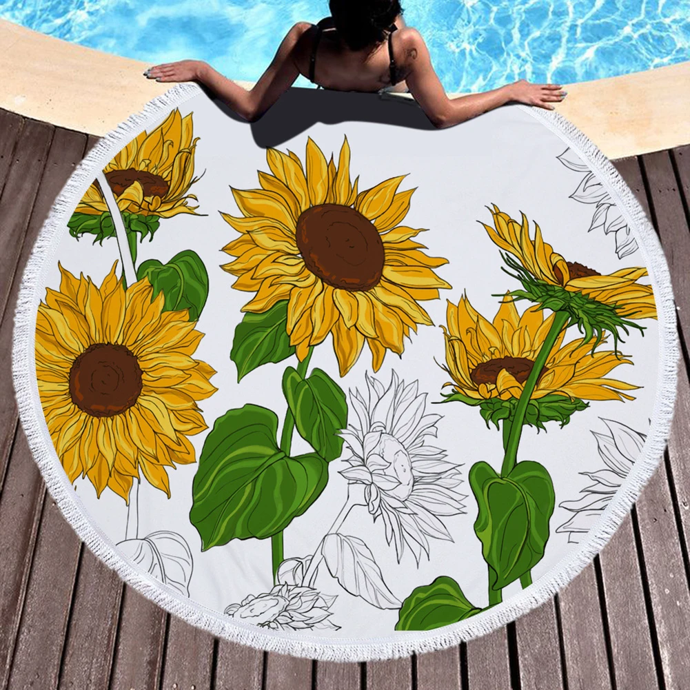 С уникальным и ярким рисунком подсолнуха, напечатанным на, круглое полотенце обеспечивает элегантный вид и не выцветает.