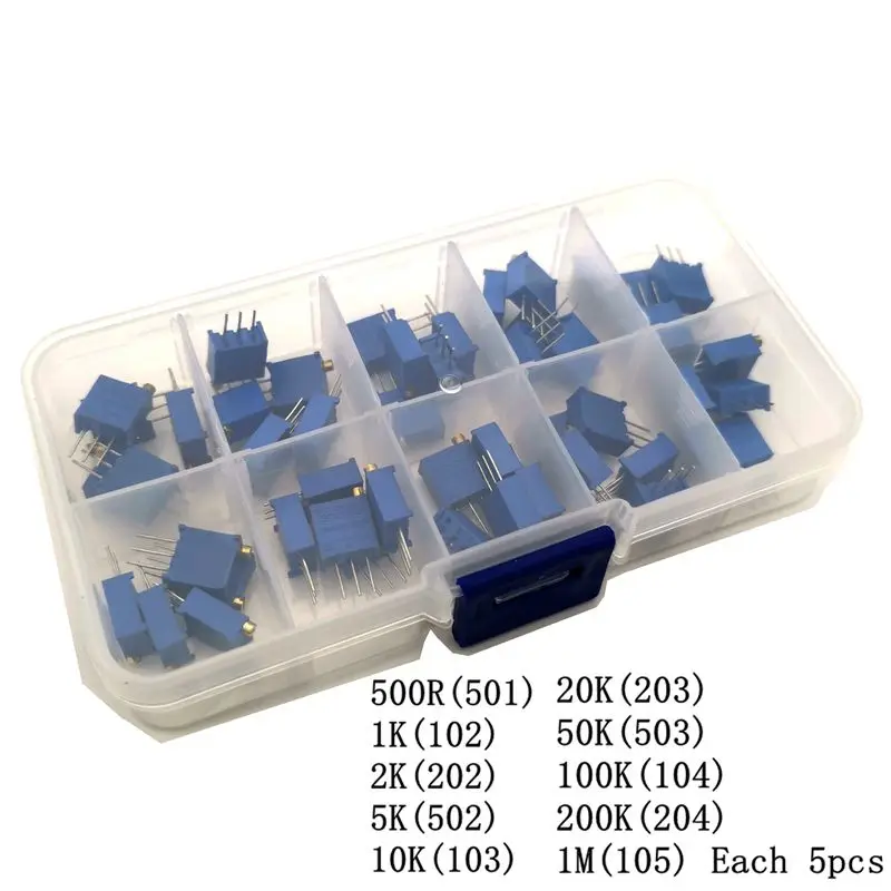 50 шт./лот 3296 Вт набор многоповоротных триммеров с потенциометром высокой точности 3296 переменный резистор 500R 1K 2K 5K 10K 20K 50K 100K 200K 1M