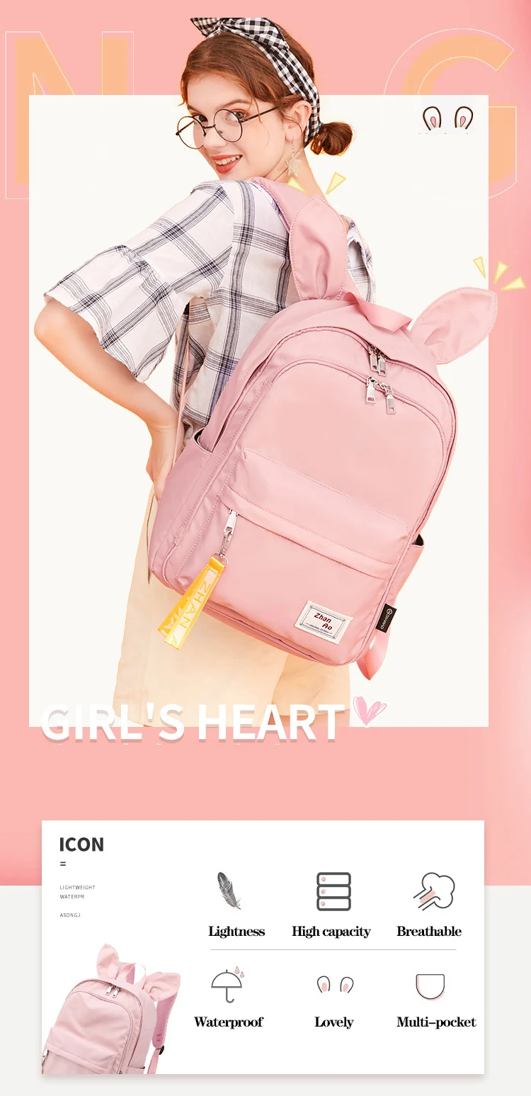 Модные рюкзаки с милыми заячьими ушками для девочек, Водонепроницаемый Школьный рюкзак, высокое качество, Mochilas, детская школьная сумка, 2020 сумки