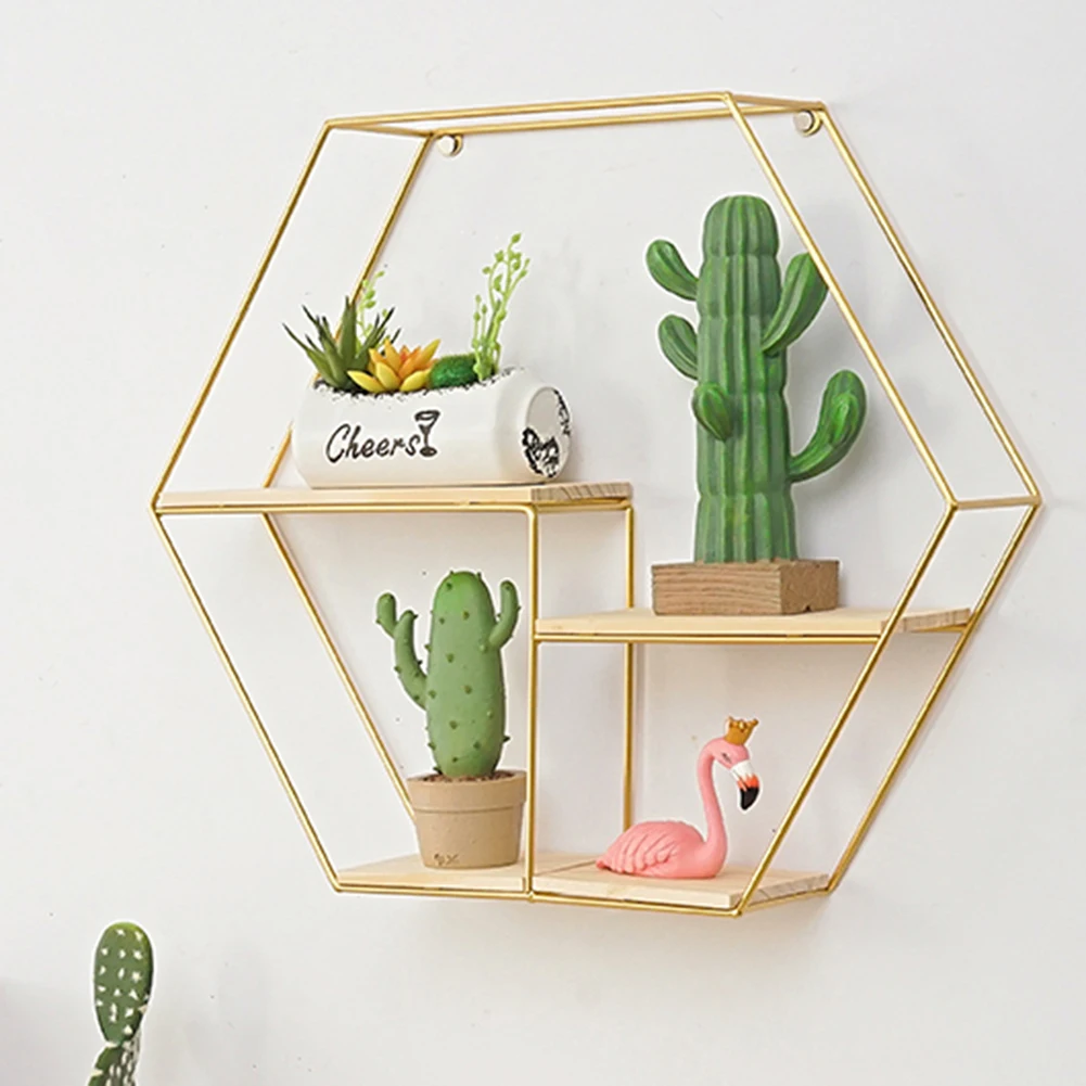 Металлический деревянный стеллаж для хранения настенная книжная Статуэтка цветочный горшок полка дисплея