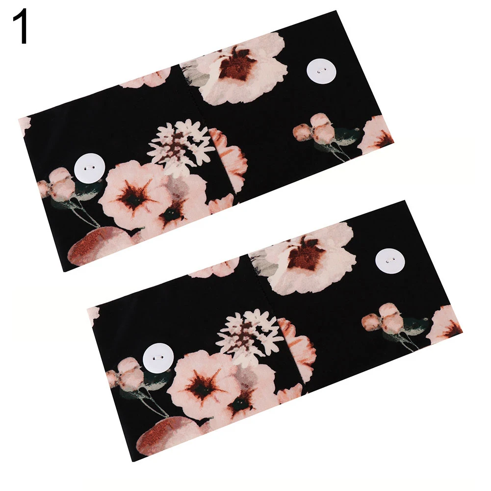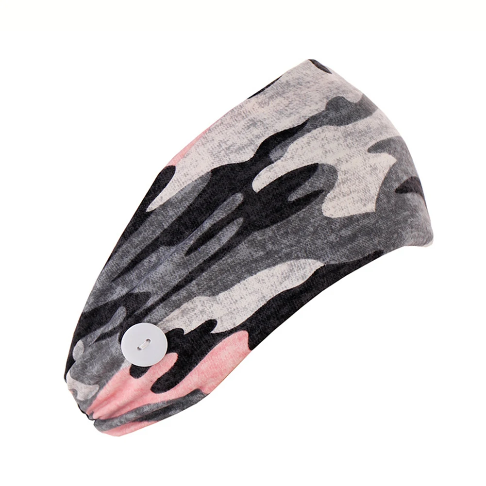 2Pcs Flower Camouflage Print Headband Buckle Elastic Running Sports Hair Band