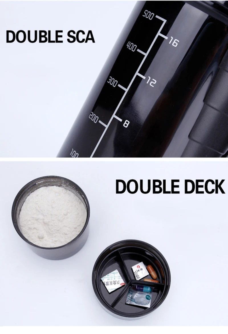 Уникальный дизайн, 2 закручивающиеся чашки на дне каждой Бутылочки для хранения белкового порошка и капсул.