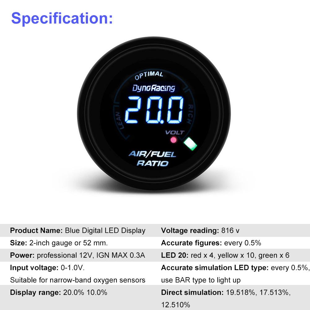 * 2. При включении, цифровой счетчик будет считывать напряжение в течение 1 минуты и переключаться на соотношение воздуха и топлива.