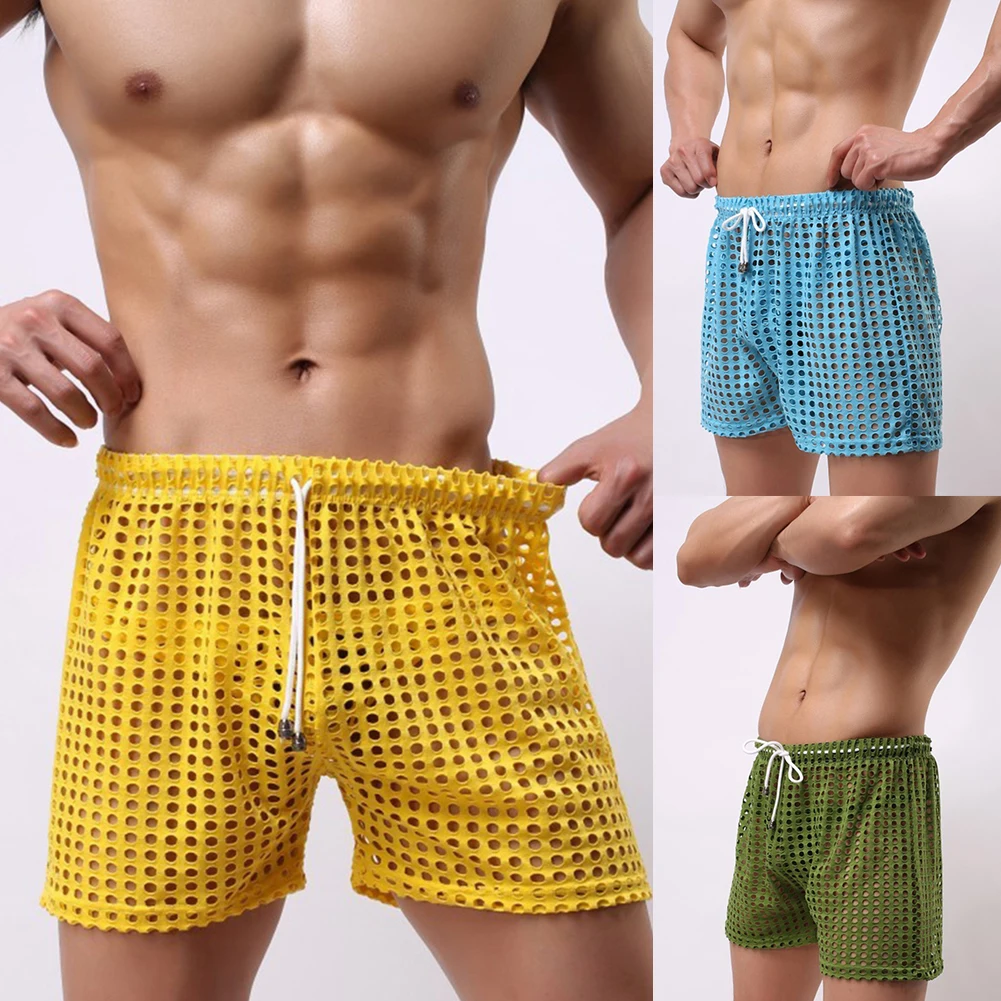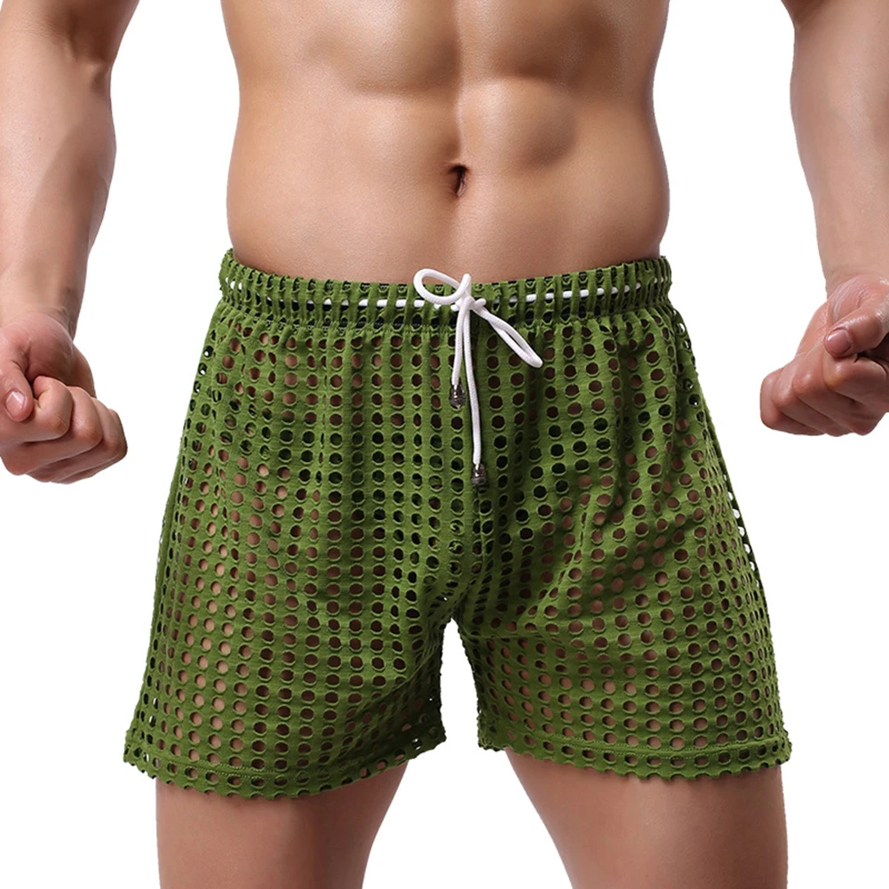 Мужское сексуальное дышащее Сетчатое нижнее белье с завязками для отдыха Боксеры Шорты