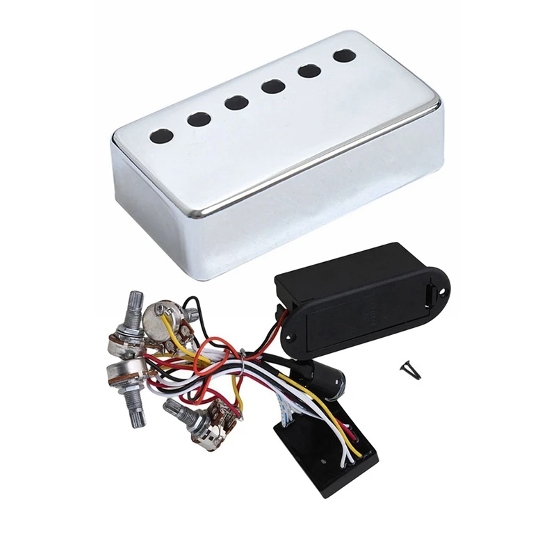 2 шт. Чехлы Humbucker Pickup и 1 шт. основная часть pickup с прокладкой потенциометра, гайка потенциометра, прокладка jack, гайка jack, Батарейная коробка, винт: Цвет: черный и хром, материал: металл и ABS