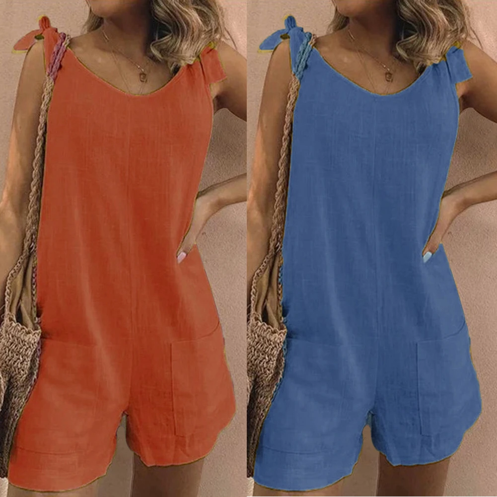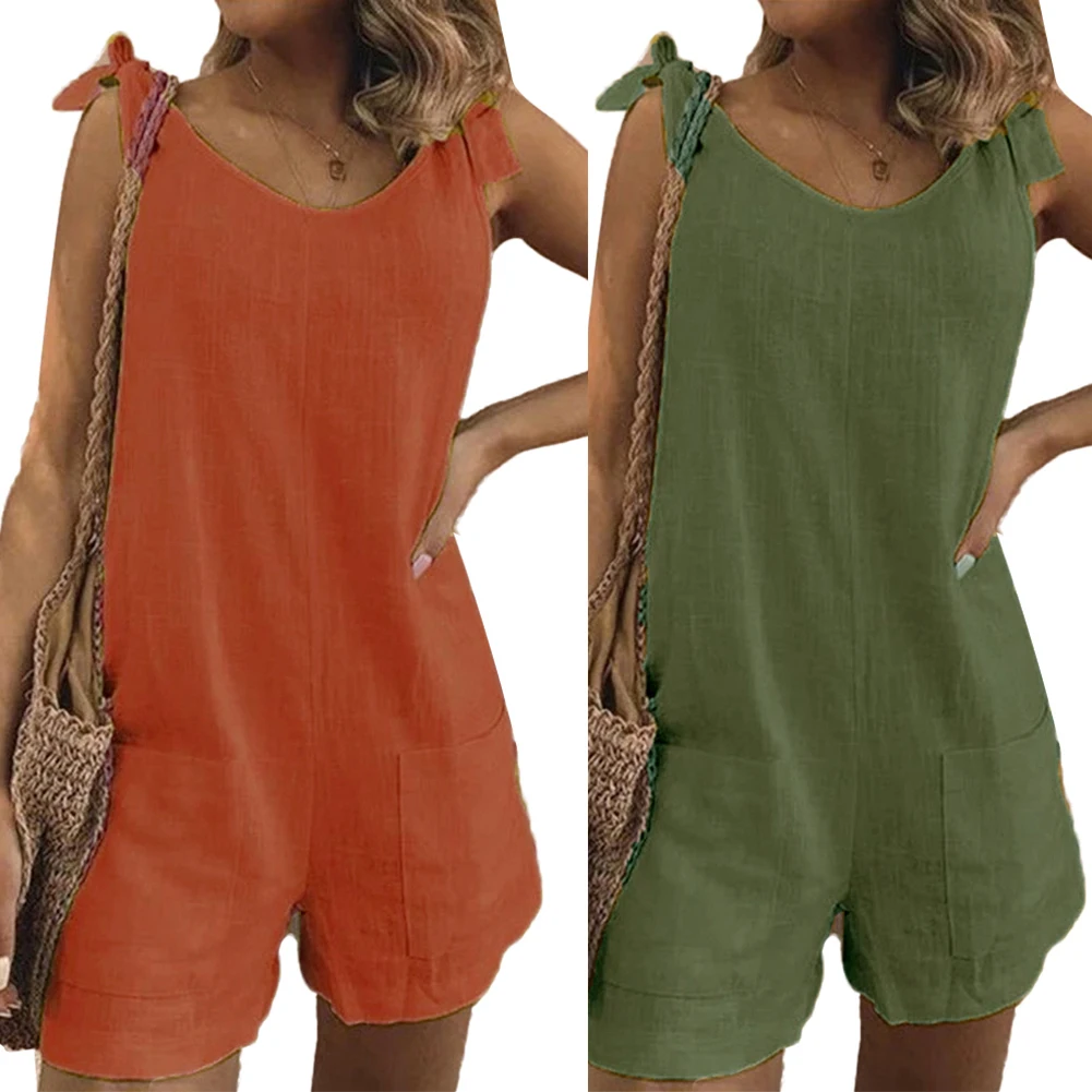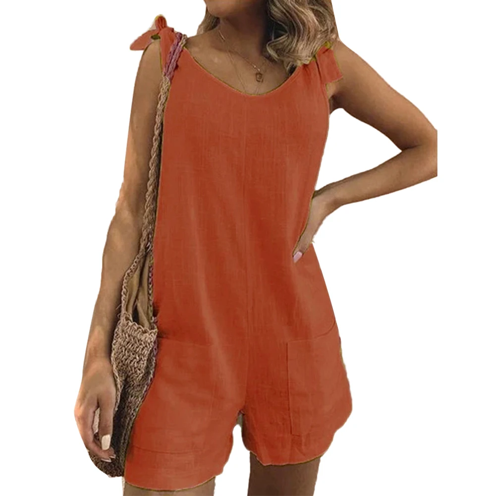 Женский комбинезон без рукавов, однотонный Свободный комбинезон с регулируемыми лямками и карманами
