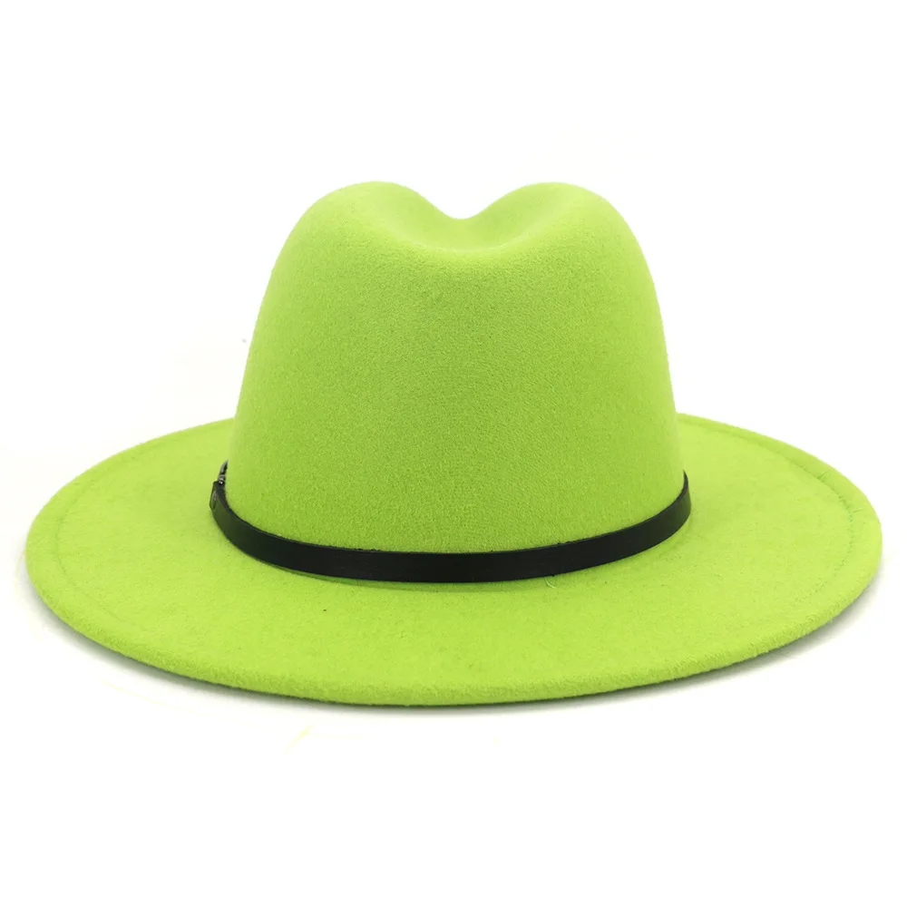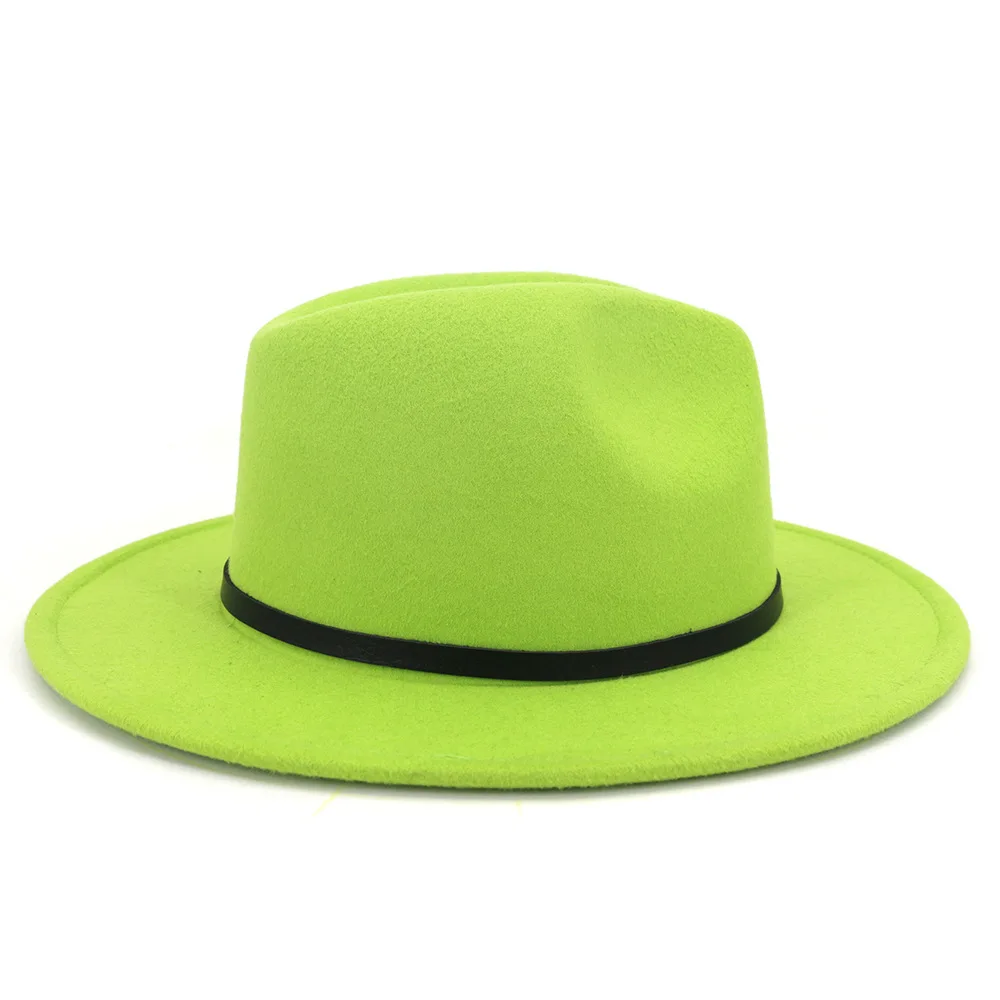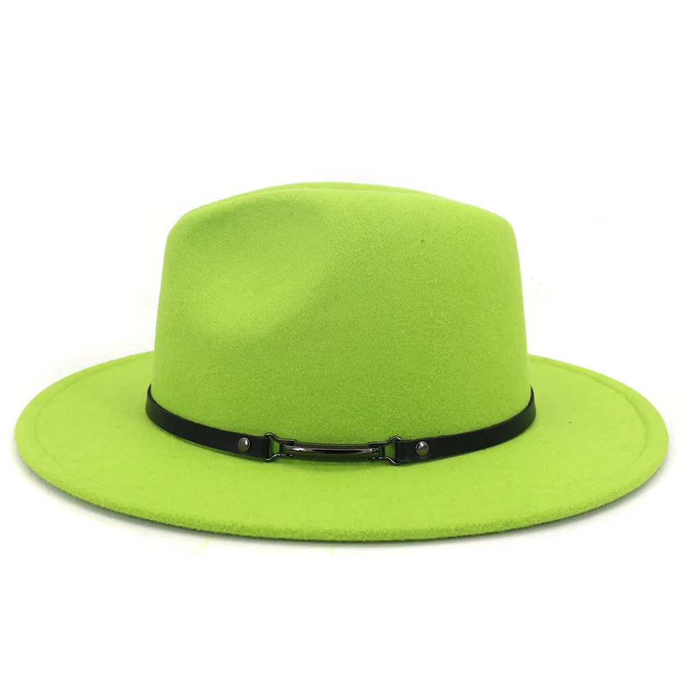 2020 Мужская и женская одноцветная джазовая шляпа с плоским краем, уличная простая шляпа с большими полями для пары, шерстяная шляпа с пряжкой на поясе