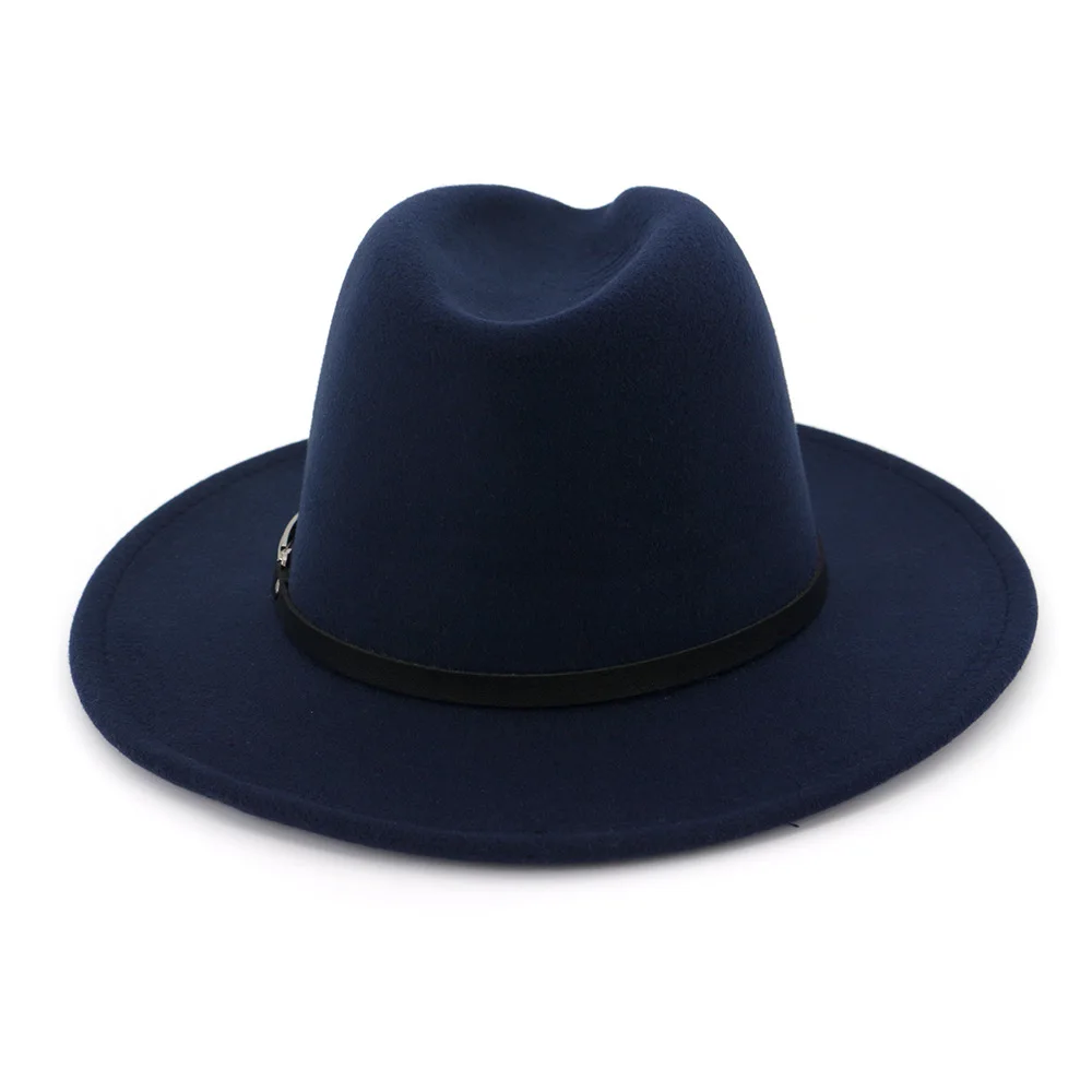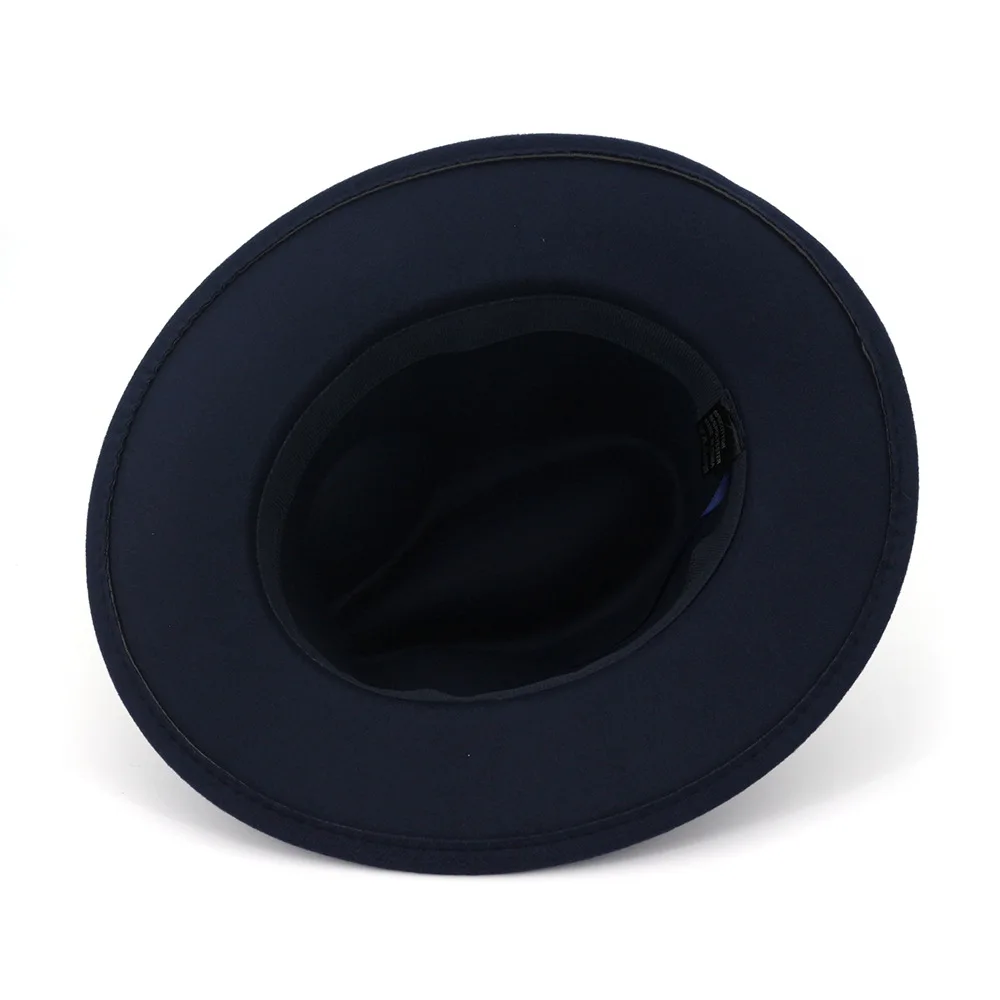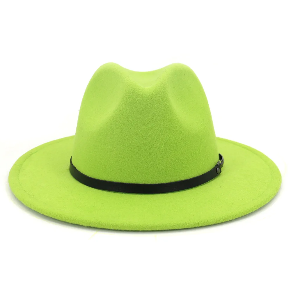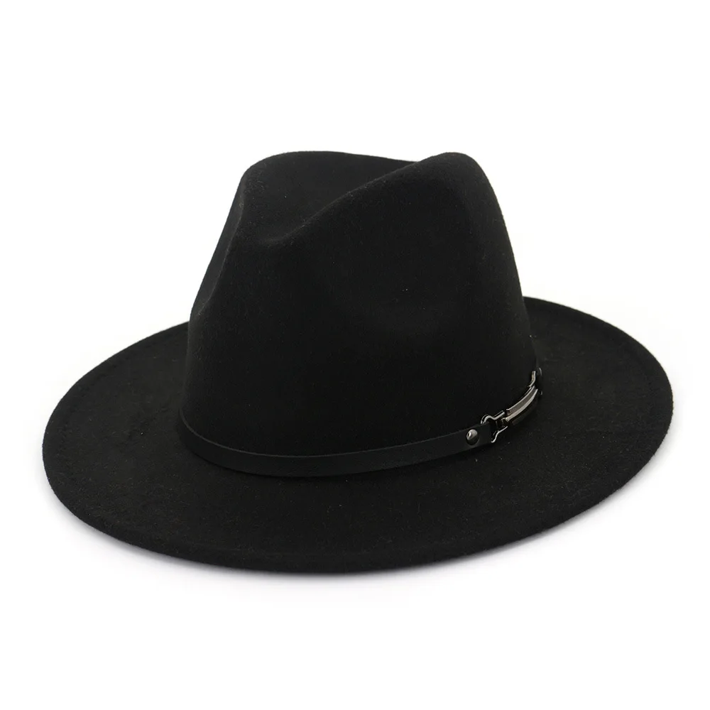2020 Мужская и женская одноцветная джазовая шляпа с плоским краем, уличная простая шляпа с большими полями для пары, шерстяная шляпа с пряжкой на поясе