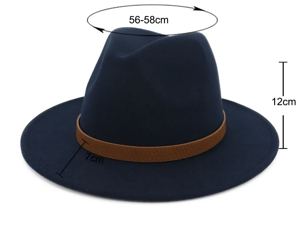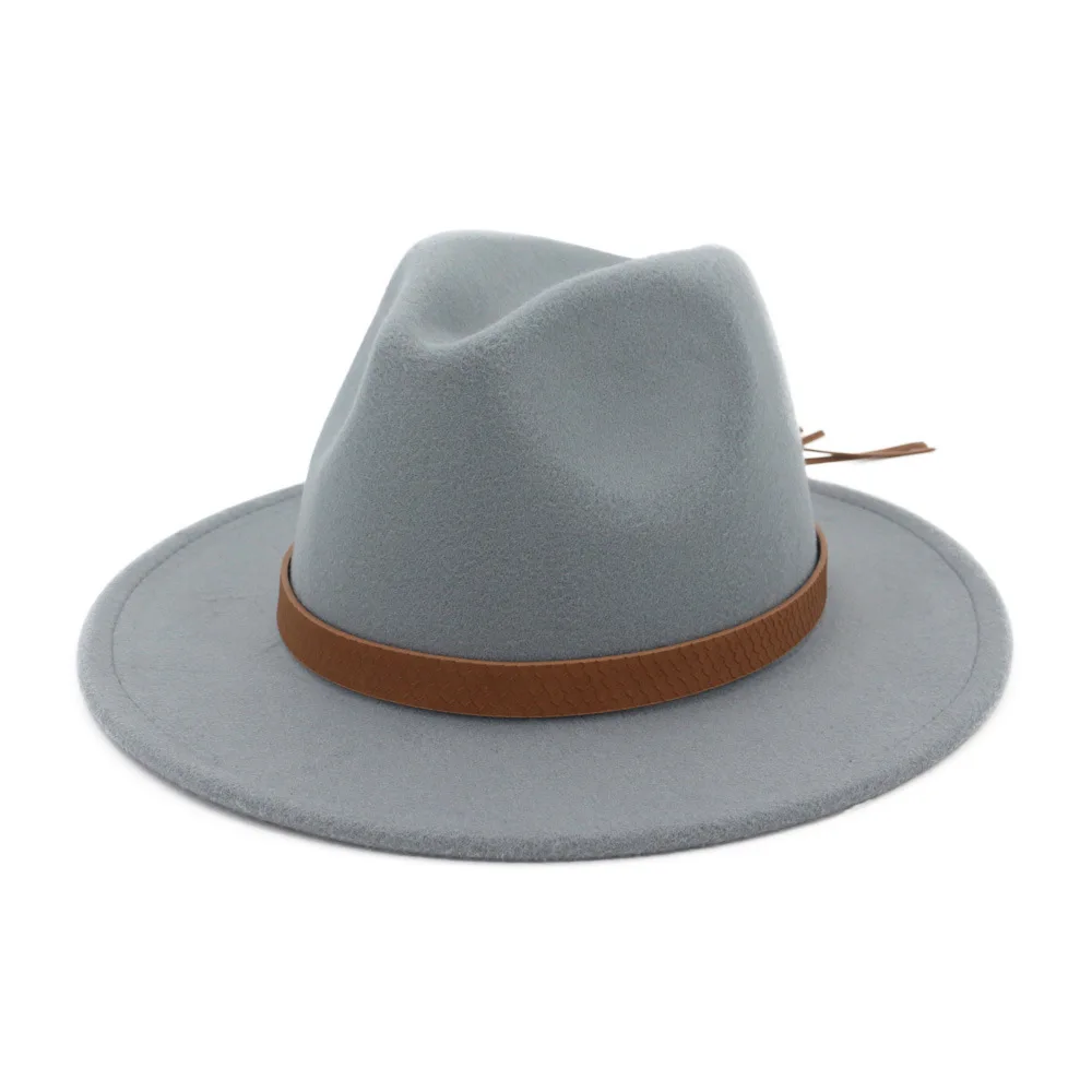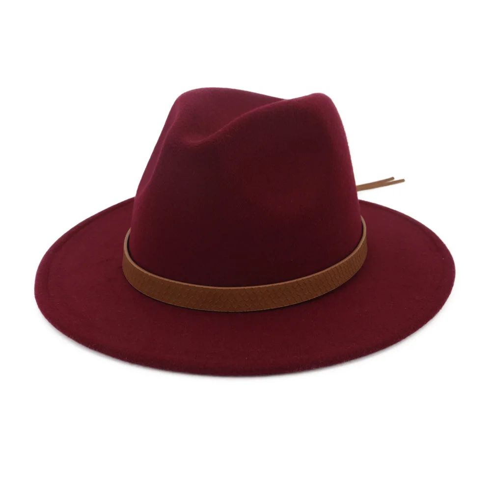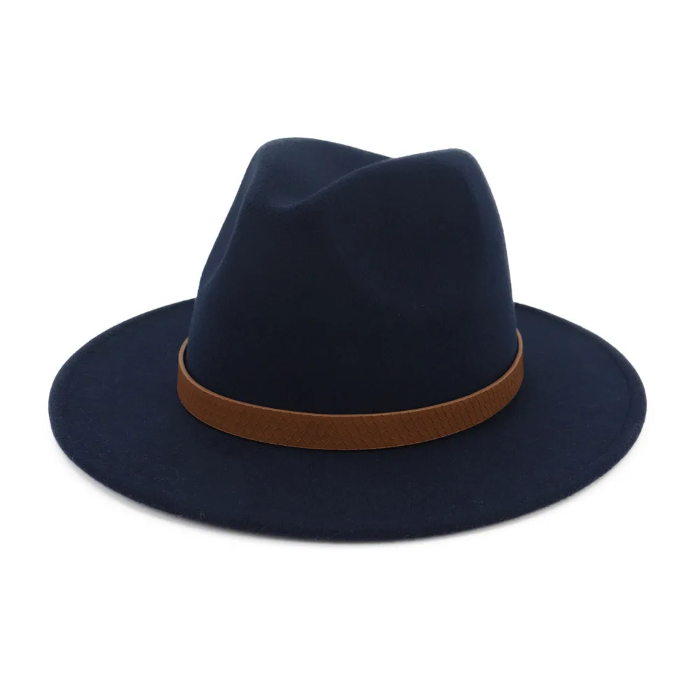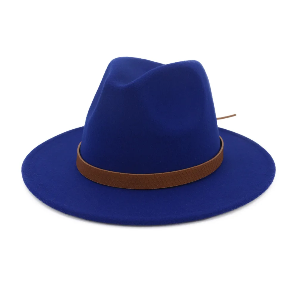 2020 Новая мужская модная шерстяная шляпа джаз, Женская одноцветная шляпа с плоским ремнем с большими полями, официальная джазовая шляпа для путешествий