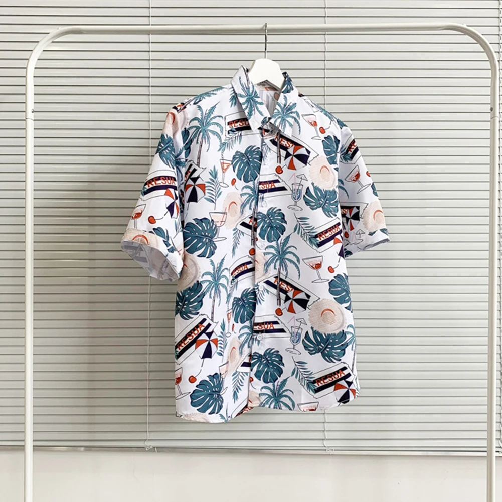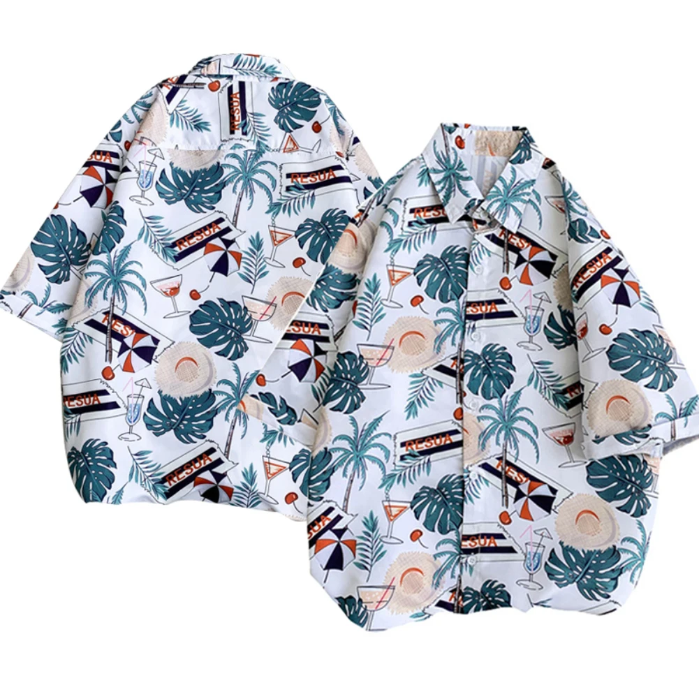 Мужская свободная пляжная рубашка на пуговицах с отложным воротником и воротником из кокосовой пальмы