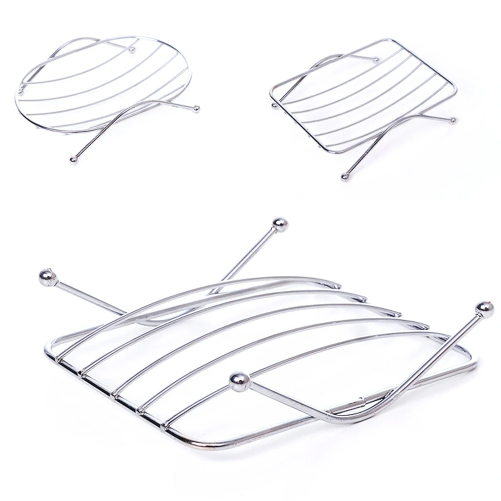 Metal Oval/Square Sponge Soap Dish Holder Draining Bathroom Kitchen Storage Rack