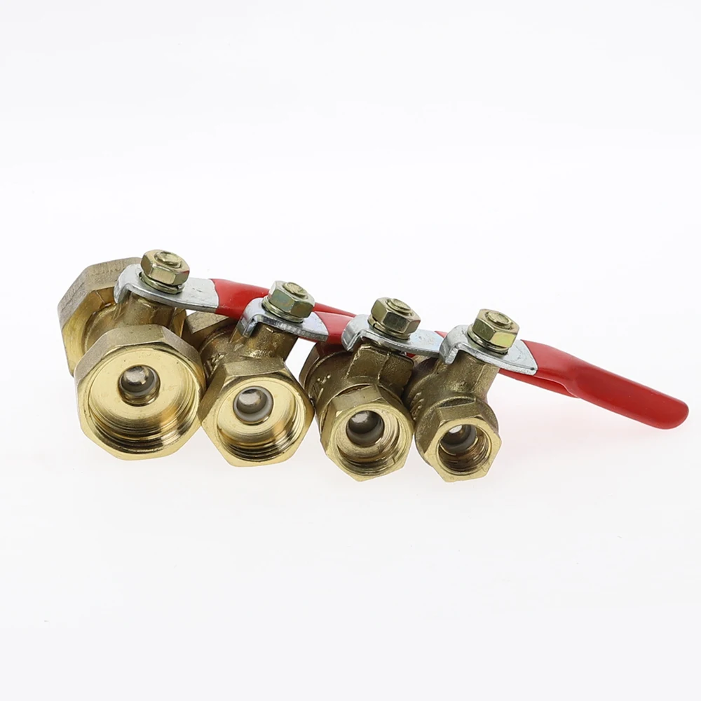 Параметры: Название продукта: шаровой клапан внутренняя резьба Размеры: (9,7 мм) G1/8 ''(12,7 мм) G1/4 дюйма (16 мм) G3/8'' (20 мм) g1/2 ''Основной цвет: золотой тон, Красный Материал: металл, латунь, пластик посылка: шаровой кран-1 шт.