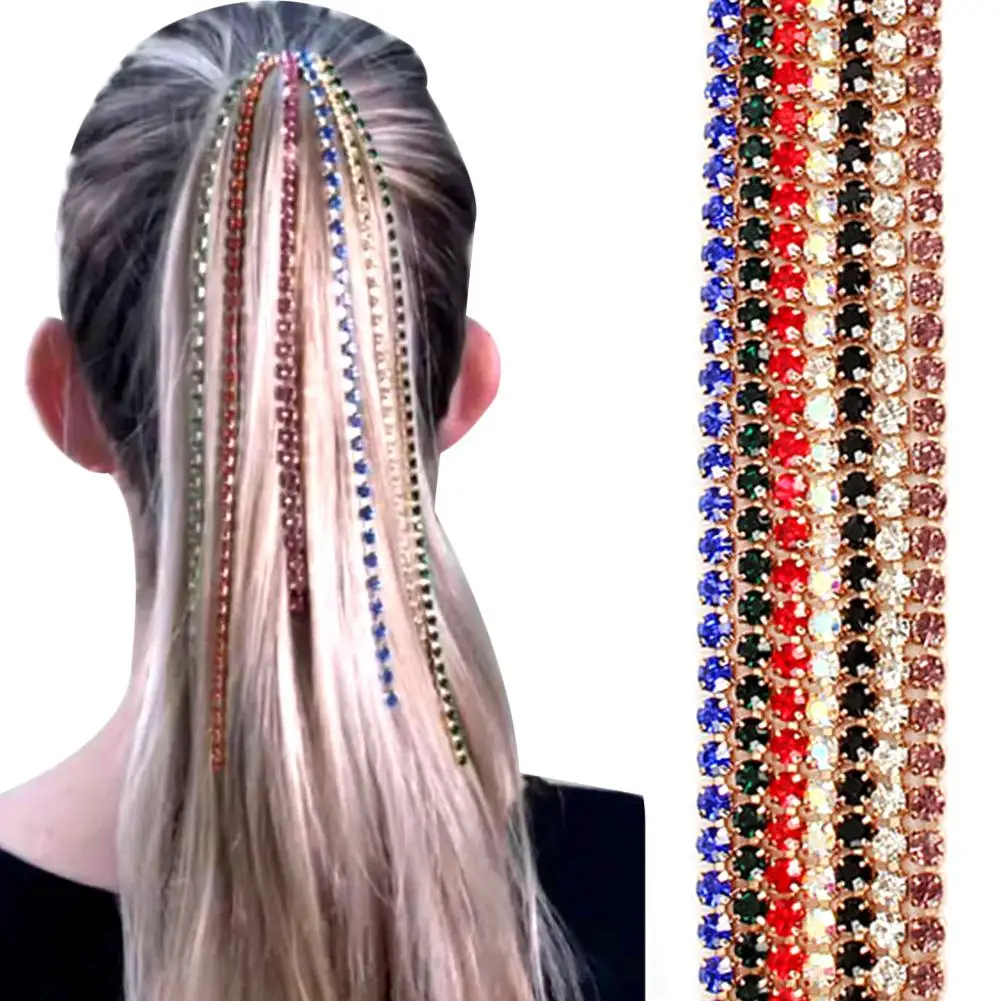 Длинные Стразы, цепочка для наращивания волос в стиле панк, хип-хоп, конский хвост, головной убор с кисточками