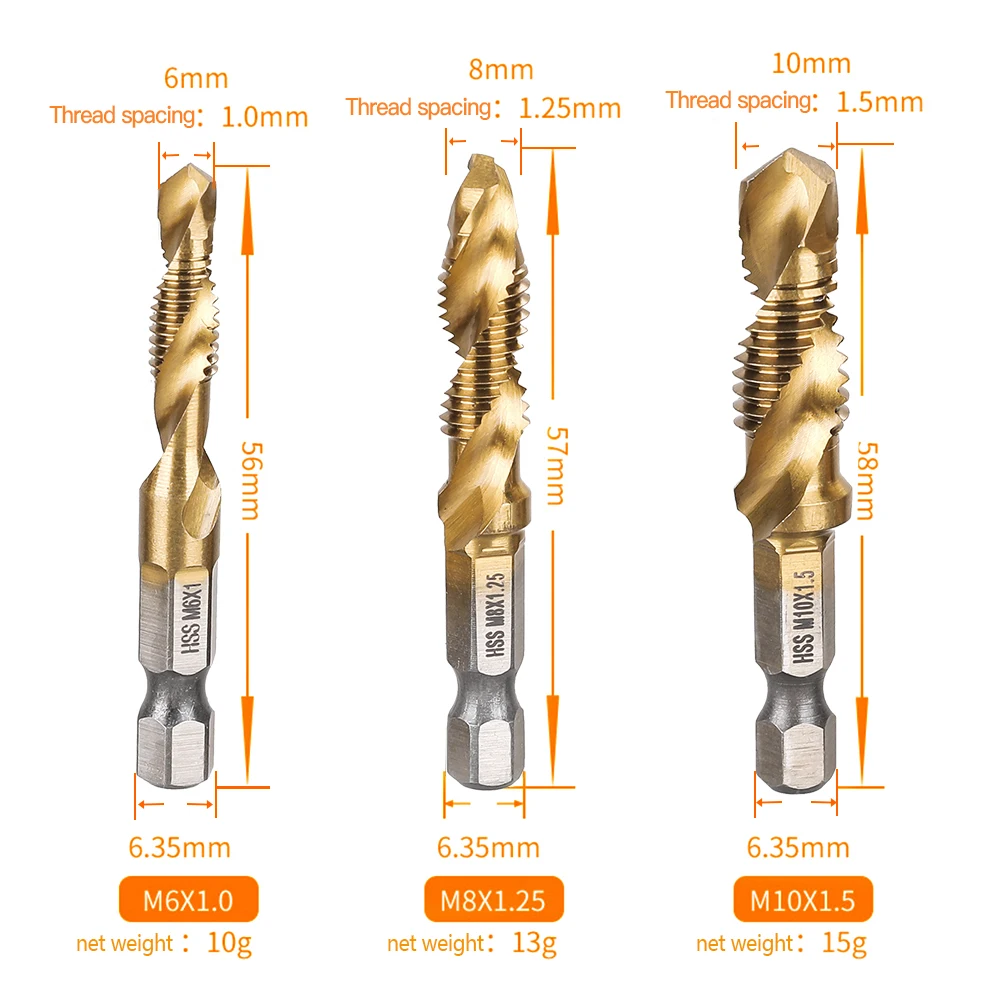 6 шт. шестигранный хвостовик титановый покрытый винт из быстрорежущей стали метрическое сверло под Метчик сверла винтовой станок составной кран M3 M4 M5 M6 M8 M10 ручные инструменты
