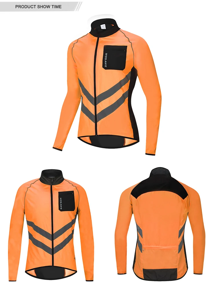 Эта упаковочная куртка защищает от ветра, но обеспечивает достаточную воздухопроницаемость, чтобы вы были хорошо вентилируемы и сухими; Она помогает держать брызги и светильник под дождем, подходит для езды в тумане или тумане; светоотражающие полосы шириной 4 см обеспечивают безопасную езду на велосипеде и пробежку ночью.