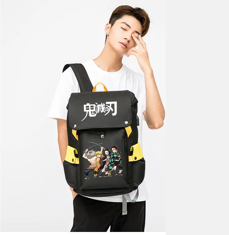 Школьный рюкзак Kimetsu no Yaiba, Большой Вместительный рюкзак с рисунком демона из аниме для женщин, дорожный рюкзак для мальчиков, Сумка с клапаном, usb-рюкзак для ноутбука