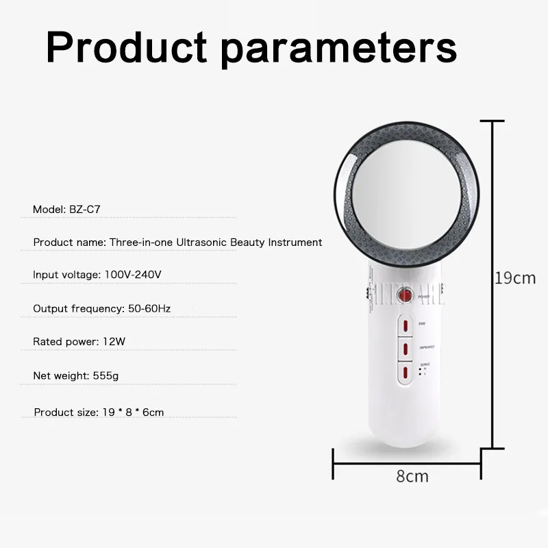 1. Ультразвуковой:Может глубоко привести в кожу, используя высокочастотную вибрацию, для уменьшения жира.2. EMS:Может имитировать настоящих людей, чтобы сделать постукивание, массаж, замешивание, измельчение, похудение с помощью микротокового массажа, упражнения для мышц и употреблять окружающий жир, сахара и углеводы. Потребляйте до 3000-4000 джоулей в секунду, чтобы ваше тело быстро и эффективно похудало.3. Дальняя инфракрасная область:Серебряный ошейник вокруг массажного зонда был спроектирован с элементами из углеродного волокна для излучения инфракрасных лучей спектром 12 мкм, которые могут глубоко проникать в кожу, улучшать кровообращение и обмен веществ.Основные функции:1. Улучшают кровообращение,2. Омоложение кожи,3. Подтяжка кожи,4. Похудеть.Особенность:Текстура кожи: усиливает текстуру кожи, против морщин, укрепляет и укрепляет кожу. Знакомит с функцией геля, крема или сыворотки для проникновения глубоко в нашу кожу.Уровень 5 сила массажа: глубокий массаж очищает кожу, делая кожу гладкой и уменьшая появление морщин.Аппарат для похудения производит высокочастотную вибрацию из расчета 1000000 раз в секунду, уменьшая появление морщин и укрепляя текстуру кожи. Улучшает текстуру кожи, против морщин, упругость и упругостьКрасный светло-синий светодиодный уход: способствует сосужению, регулирует состояние секреции кожи, эффективно удаляет черные точки, прыщи, ускоряет функцию кровообращения, способствует тканевой активности, схождению, упругой коже, достигает отбеливания, коррекции фигуры.Идеальный прибор: отлично подойдет женщинам, которым необходим уход за телом и укладка. Маме нужен хороший помощник для похудения в области талии и живота после беременности.Посылка входит:1 * Основная машина2 * EMS-прокладкиКабель 1 * EMS1 * Адаптер питания1 * Руководство1) ваш отзывы в действительно важен для нас, пожалуйста, уделите несколько секунд, чтобы оставить хороший отзывы в, если вы удовлетворены нашим товаром или обслуживанием, большое спасибо!