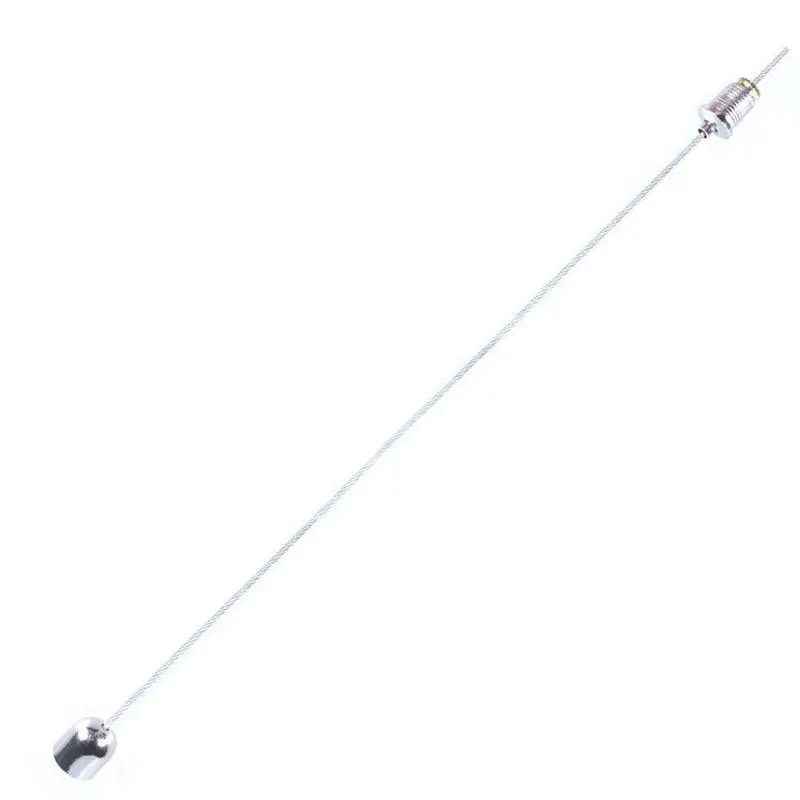 Стальные кабели 1 м, но расстояние от потолка настраивается пользователем, обрезая кабель до желаемой длины.