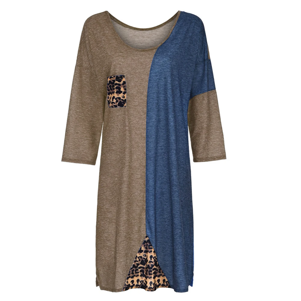 В стиле пэчворк и леопарда платье выглядит стильно и очаровательно.