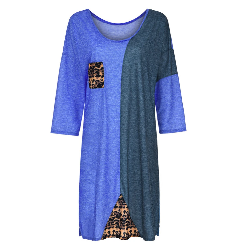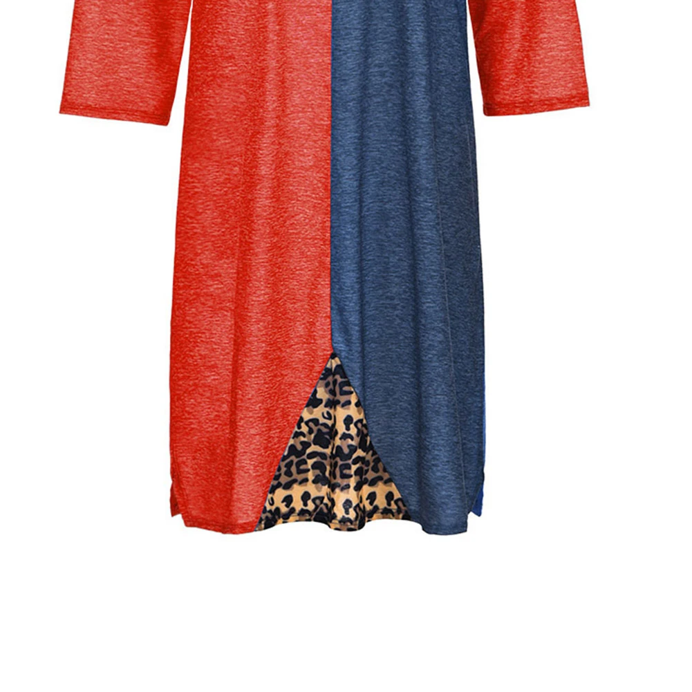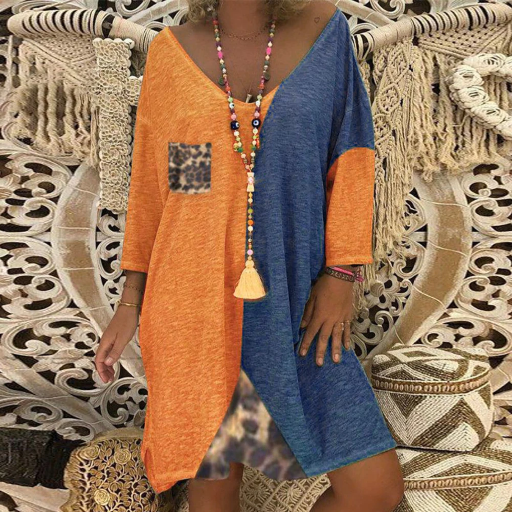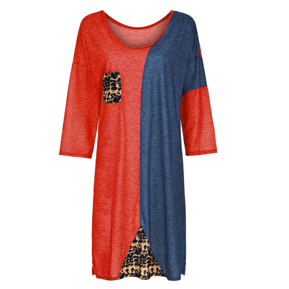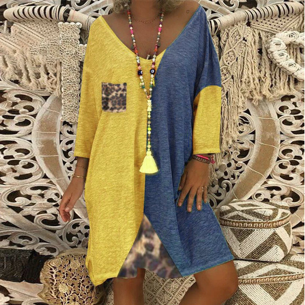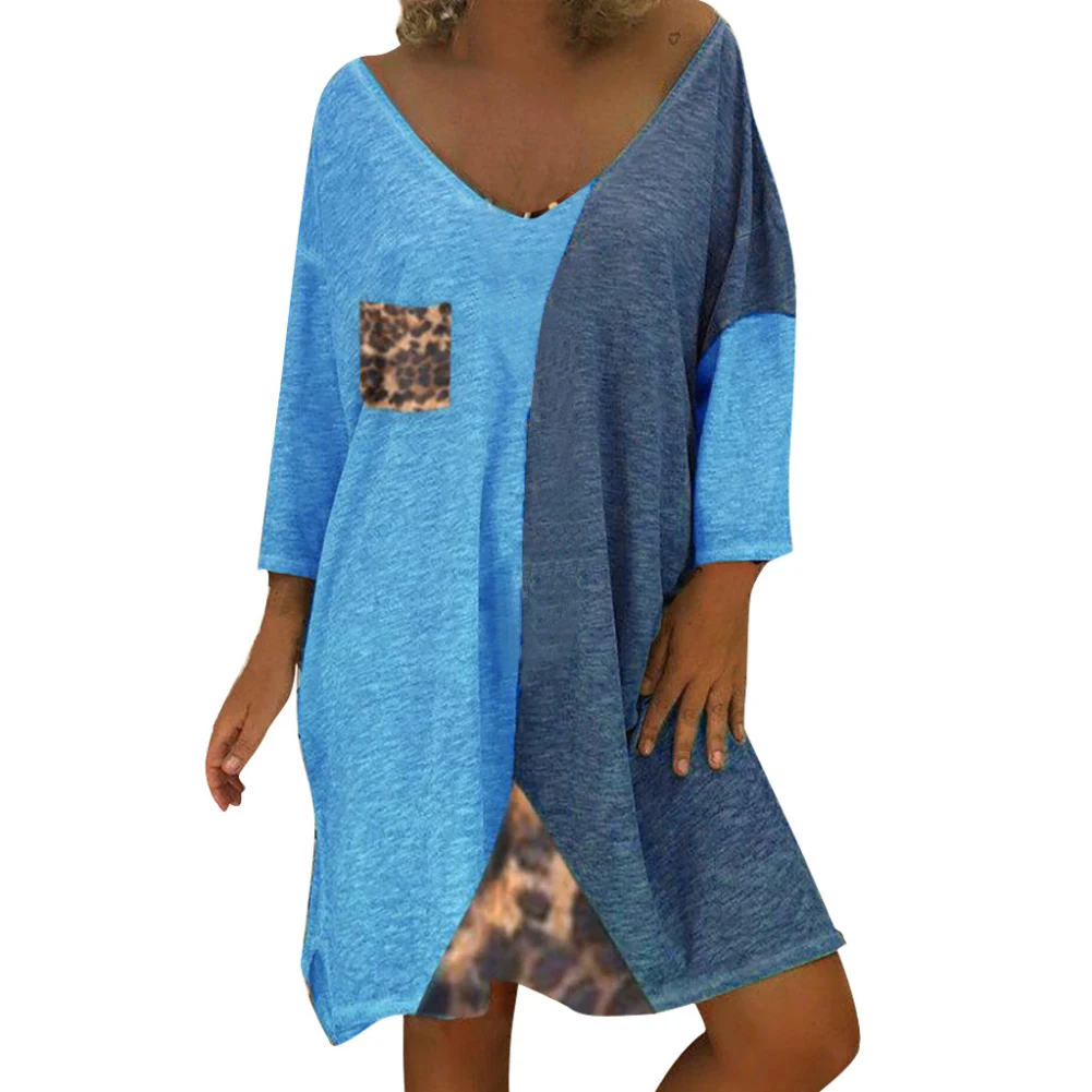 Модное женское Свободное платье с леопардовым принтом, v-образным вырезом, длинным рукавом и карманом, сарафан