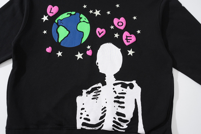 Skull Letter Graffiti Hoodies Men Oversize Streetwear Skeleton Pullover Casual Loose Cotton Harajuku Sweatshirts Stranger Things