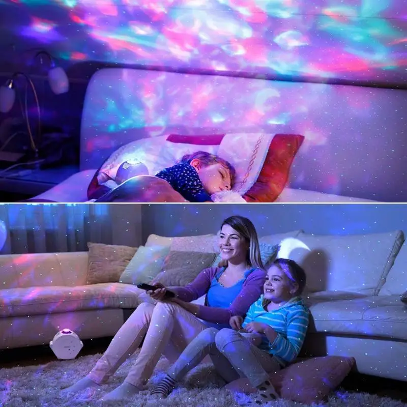 Он состоит из лазерного режима светильник и морской волны светильник, и может быть проецирован мигать звезды, неподвижные Луны, плавающие облака и другие сцены