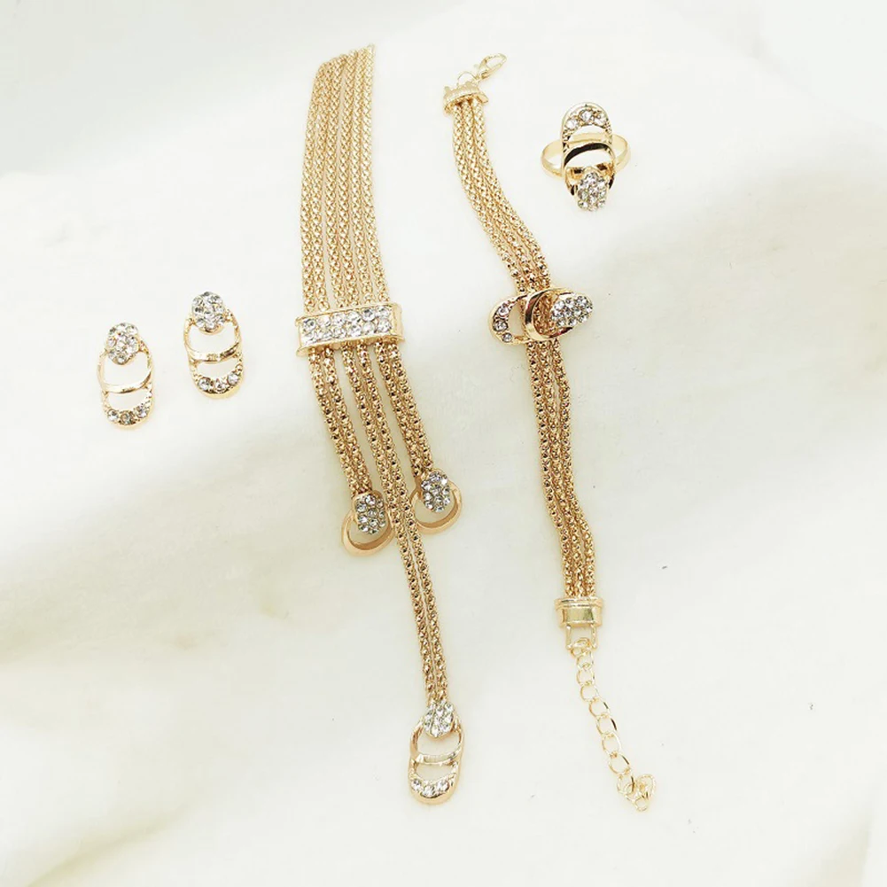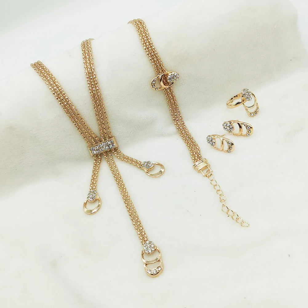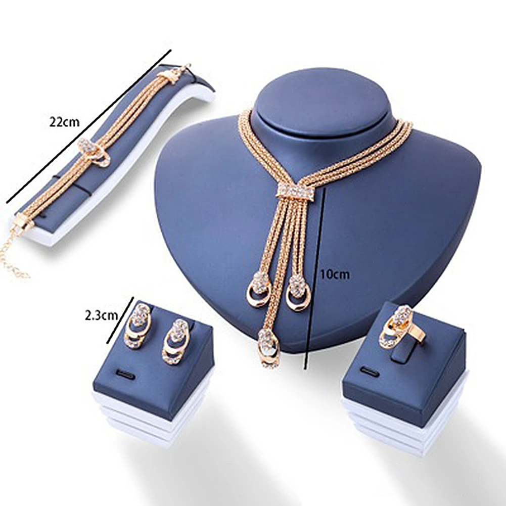 Женская Мода Стразы инкрустированные ожерелье браслет кольцо серьги шпильки ювелирный набор