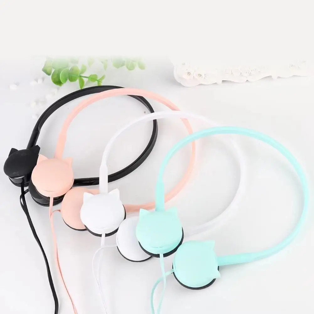 С милым рисунком кота 3,5 мм проводной над головой наушники стерео музыкальные наушники с микрофоном