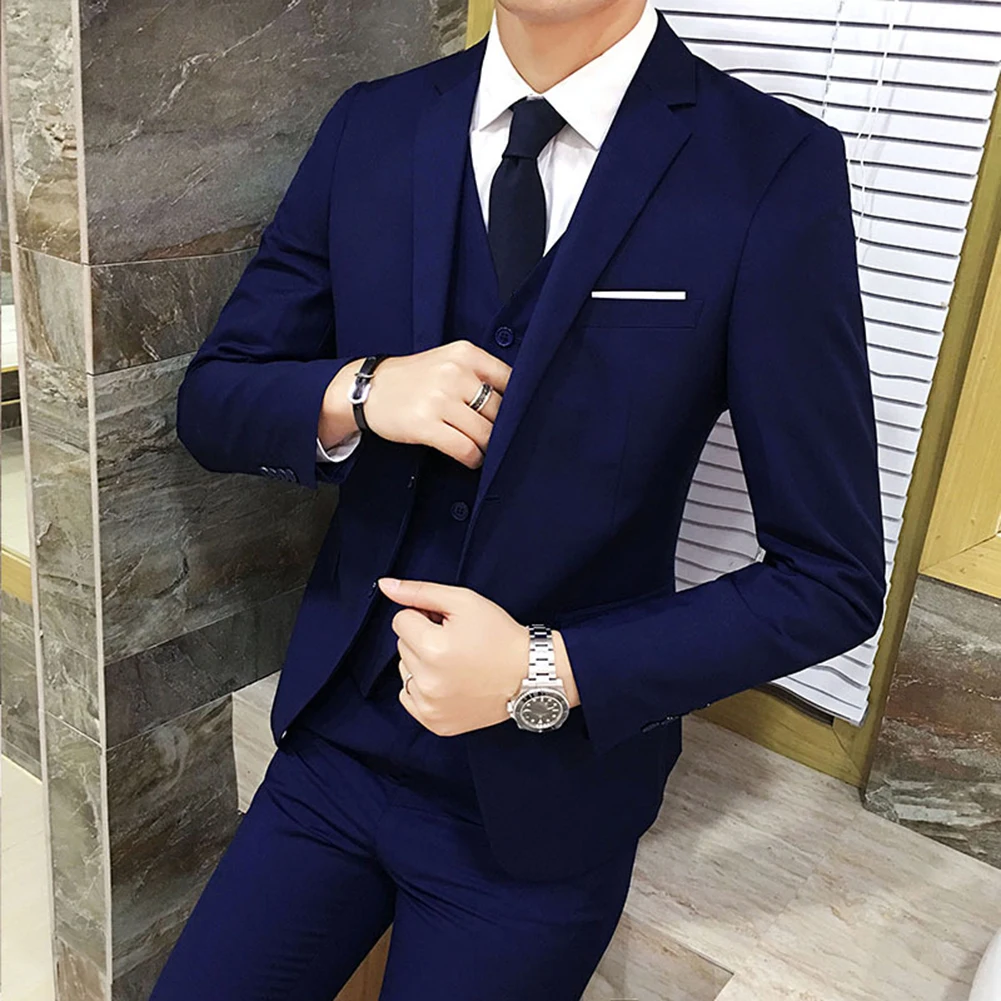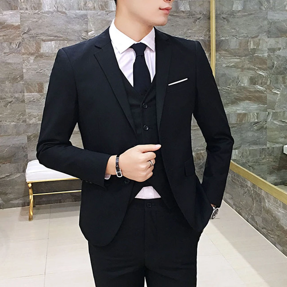 Мужские деловые вечерние костюмы из трех предметов с отворотами и двумя пуговицами на заказ, свадебные смокинги для жениха, пиджак, штаны, жилет, костюм