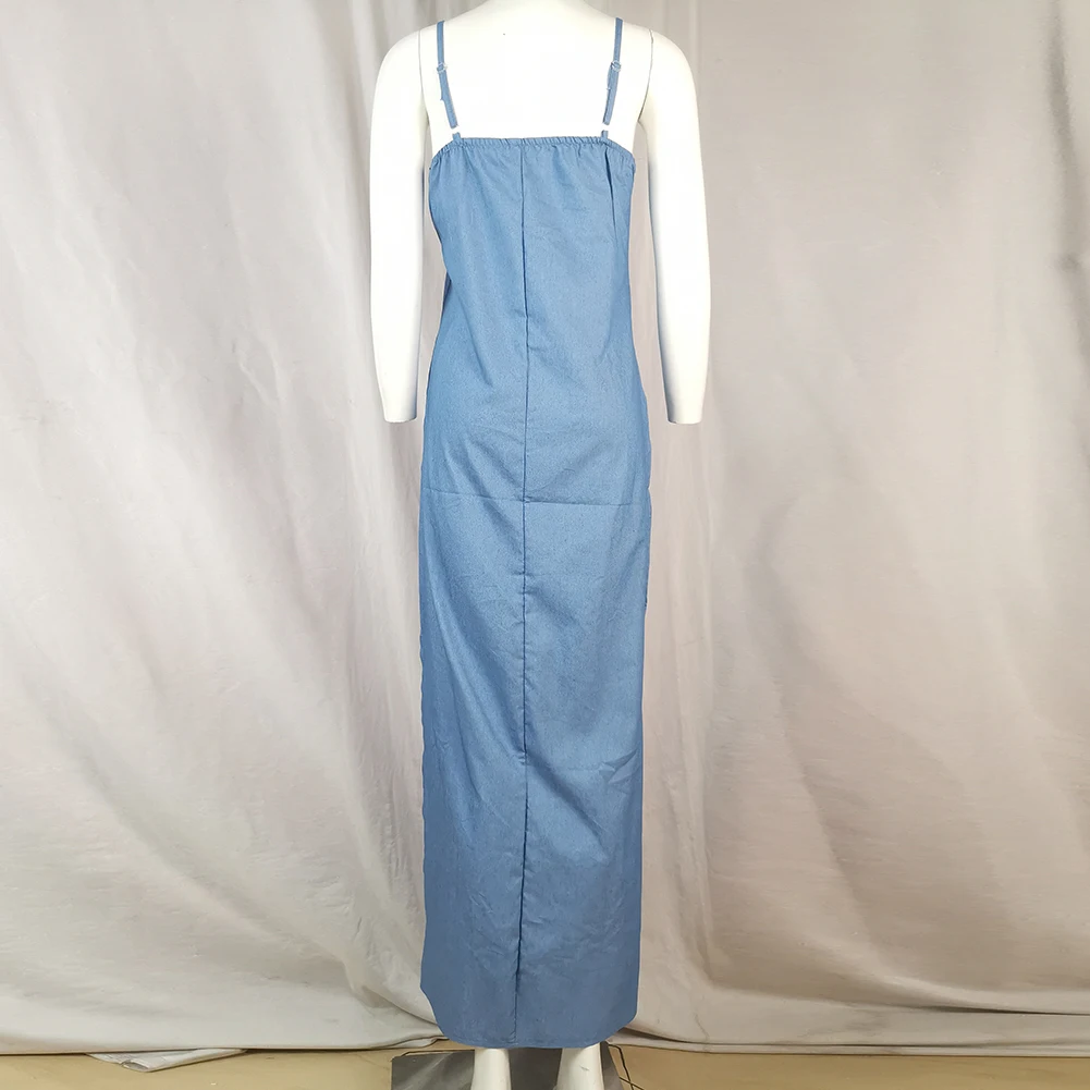 Женское повседневное однотонное длинное платье без рукавов с регулируемыми бретелями