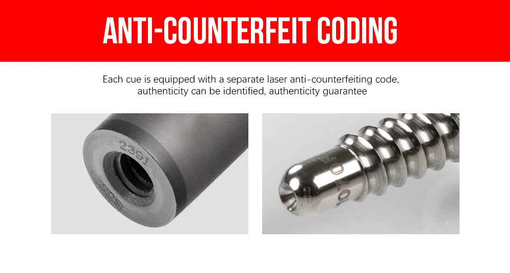 7. Каждый cue оснащен отдельным лазерным кодом защиты от подделок, аутентичность может быть определена, гарантия подлинности