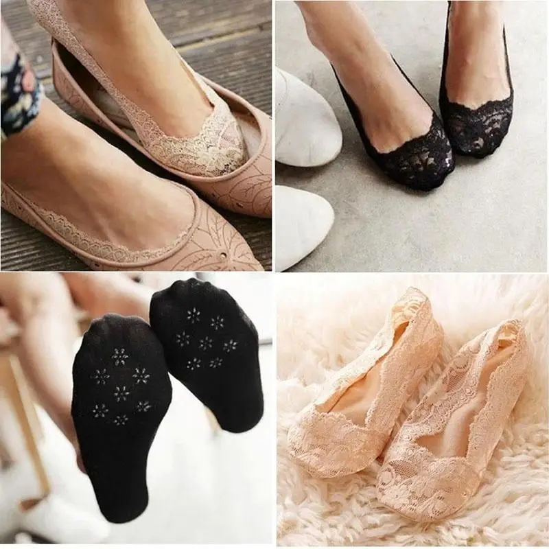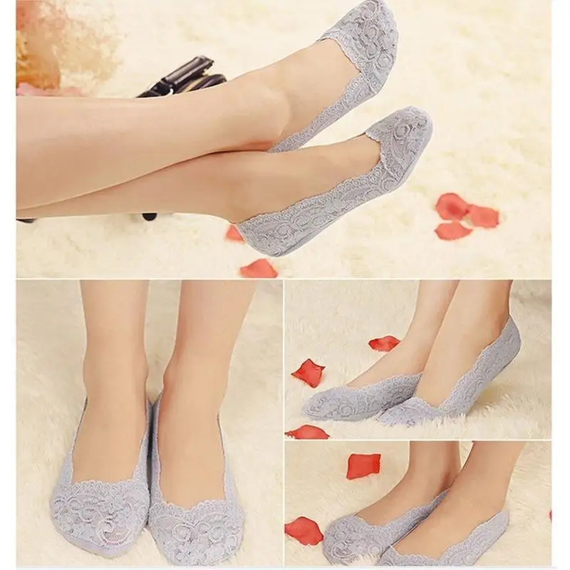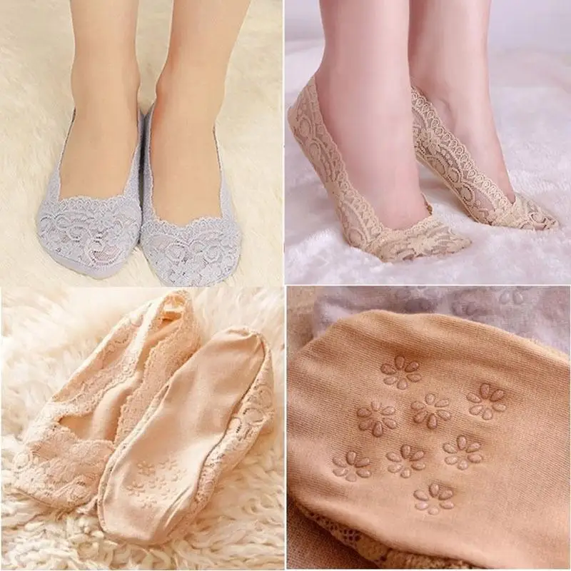 Нескользящие силиконовые невидимые кружевные ботильоны; Низкие носки