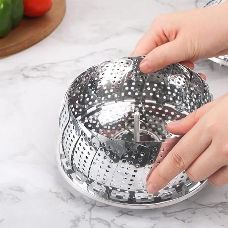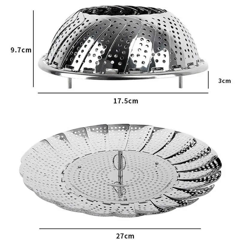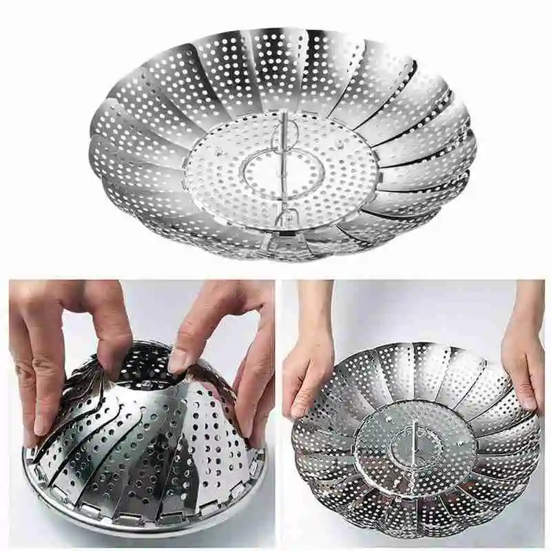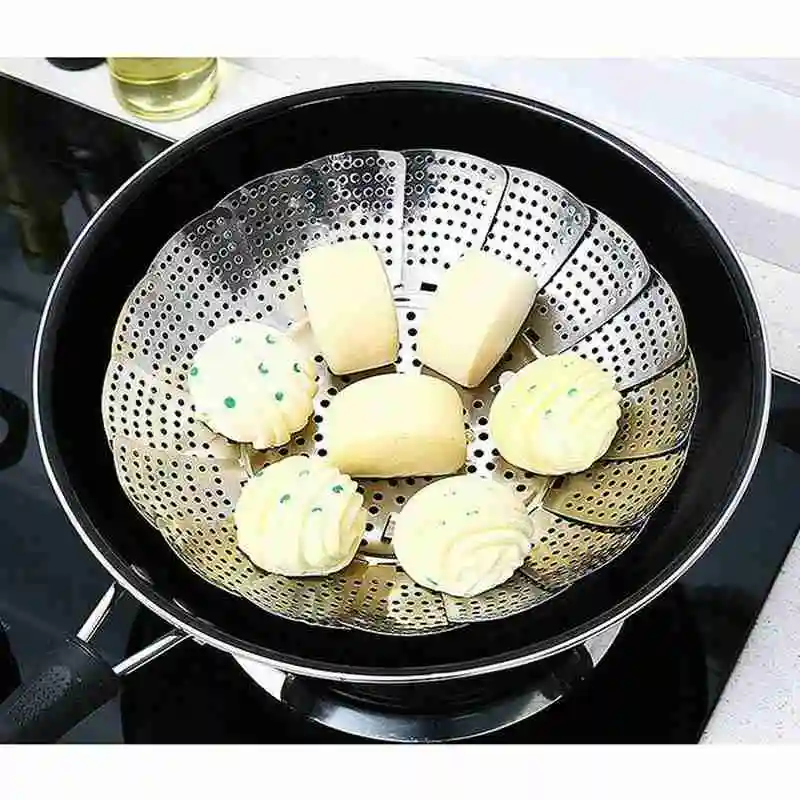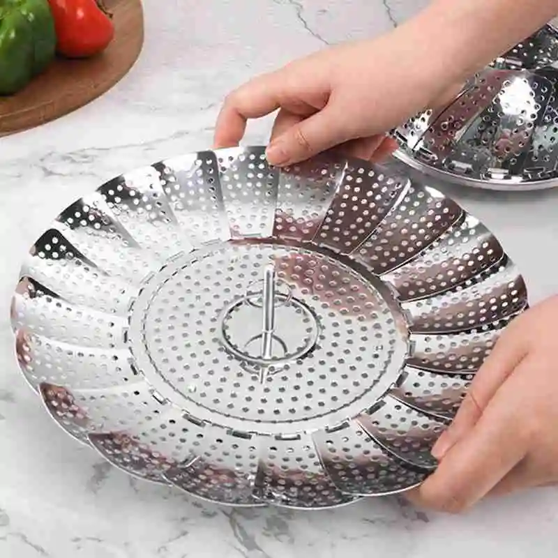 6. The steamer can be folded up for storage, and can be expanded to pots/pans and pressure cookers of various sizes, turning your favorite pot into a safe steamer. It opens like a water lily and folds compactly to save storage space.
