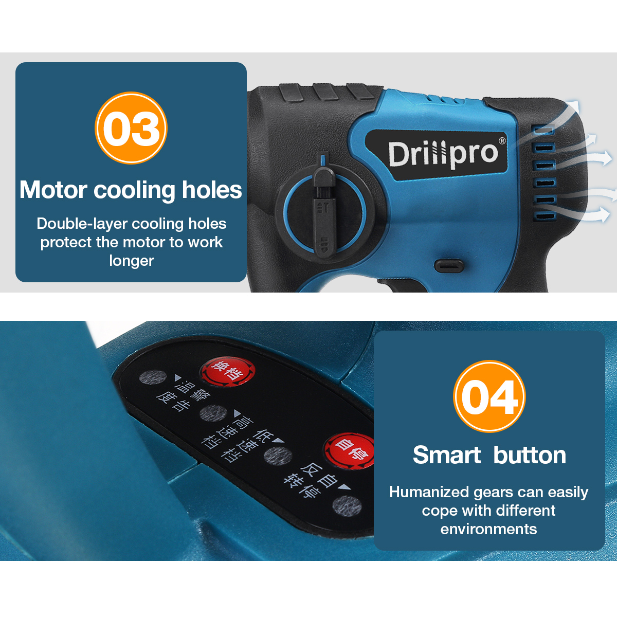 -Вентиляционные отверстия предотвращают перегрев электрического молотка.