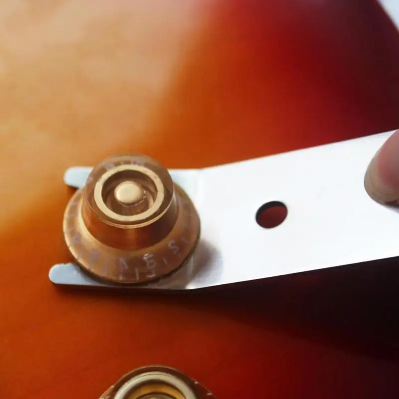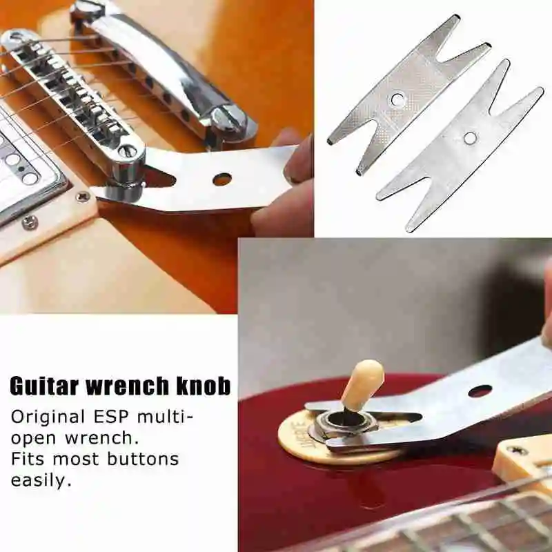 Этот многофункциональный гаечный ключ для электрогитары (с зубьями) может затянуть или ослабить большинство гаек на гитаре, переключатель выходного гнезда, потенциометр управления, переключатель пикапа, тюнер, ленточные гвозди и т. д.
