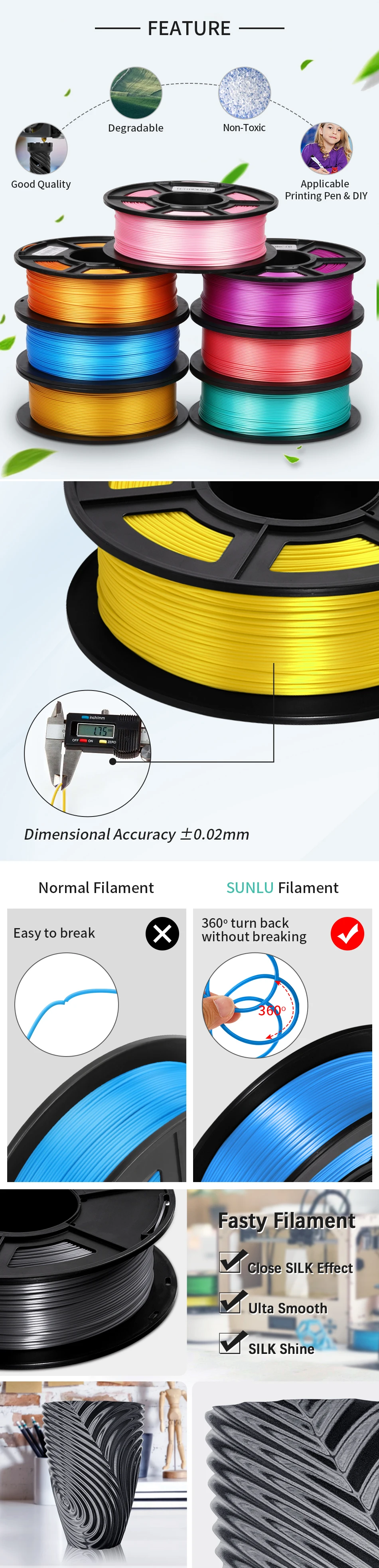 SUNLU 1,75 мм шелковый Pla Синтетическая нить 1кг 1,75 мм шелка 3d нити для 3D-принтеры полный цвет шелк Fialment набор «сделай сам» для художественной печатью