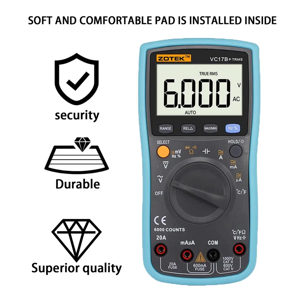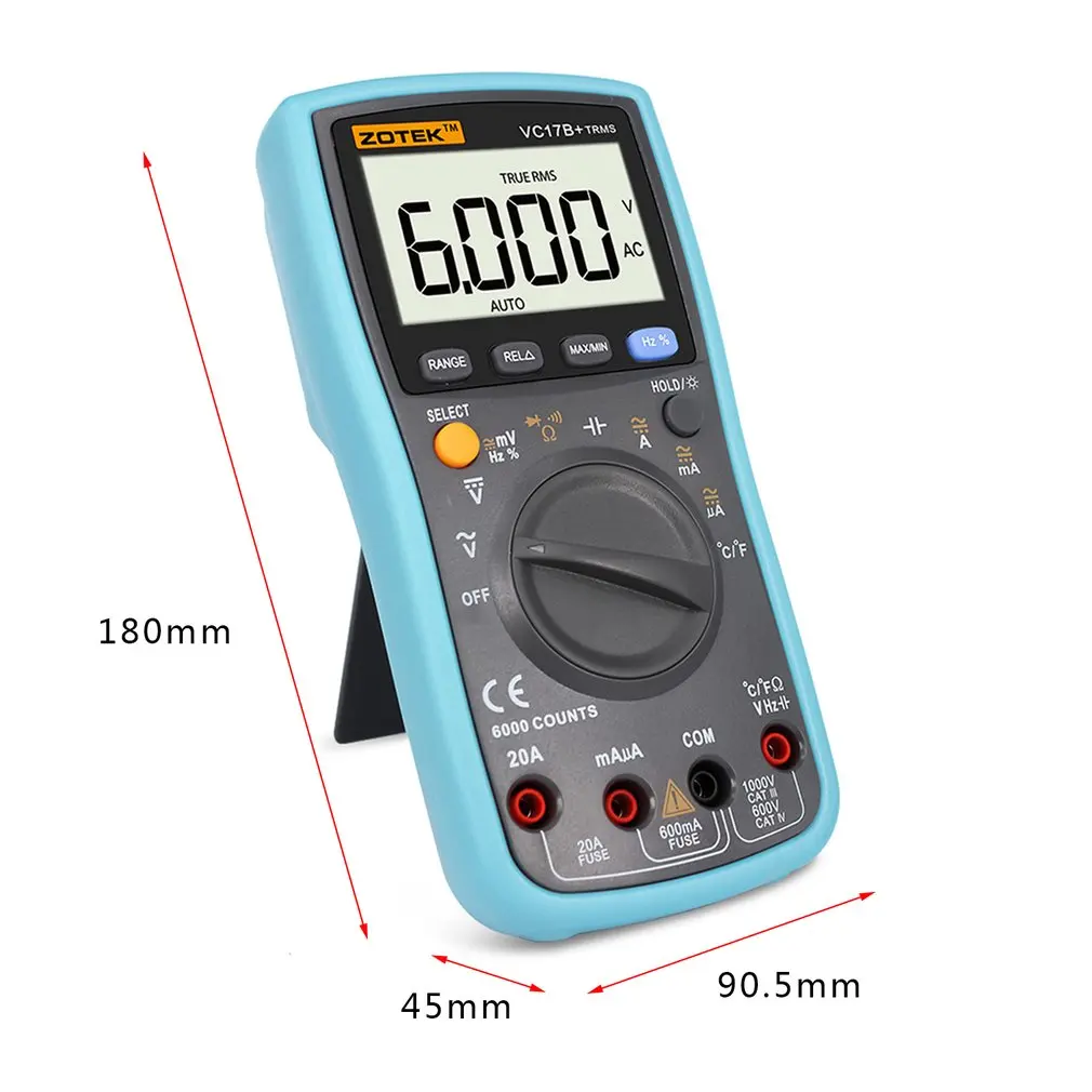 ZOTEK VC17B Digital Multimeter 6000 Counts Backlight AC DC Ammeter Voltmeter Ohm Capacitance Meter Portable Multimeter