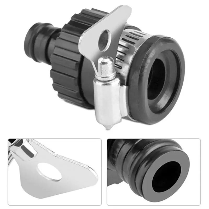 Используется для соединения шланга с водопроводом (нужен быстрый соединитель для фиксации шланга плотно), удобен для садоводства, мытья автомобиля и других работ по очистке.
