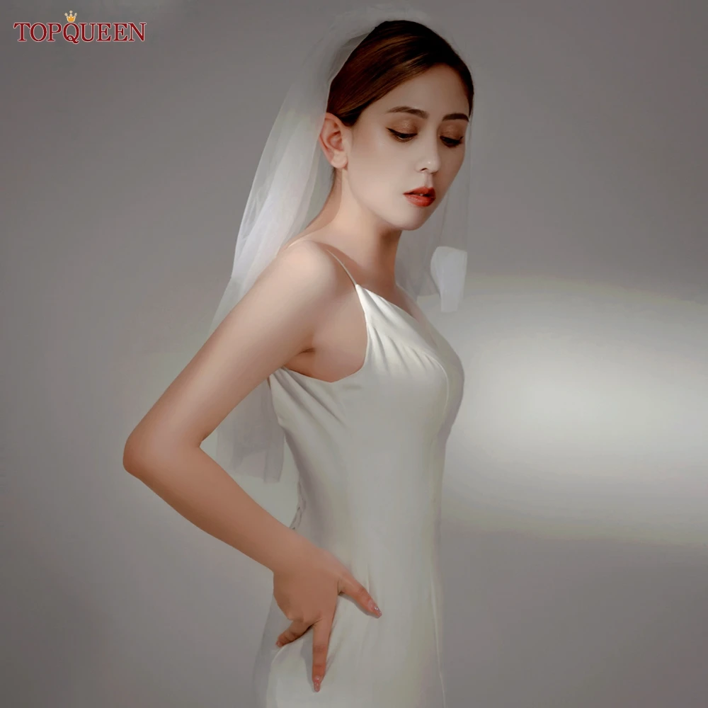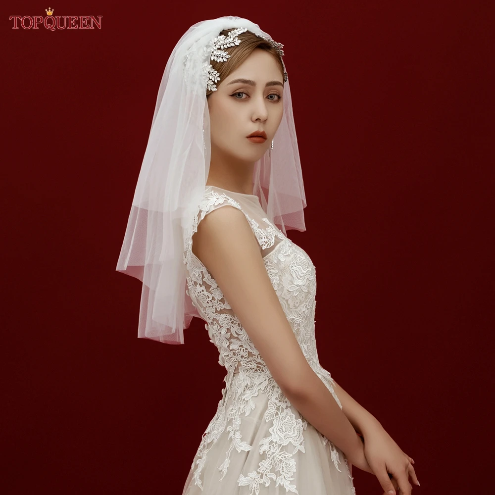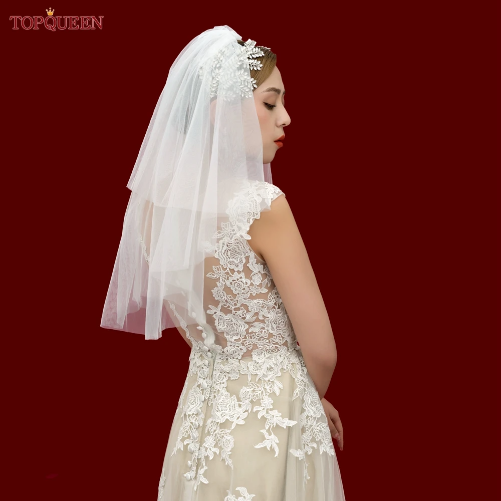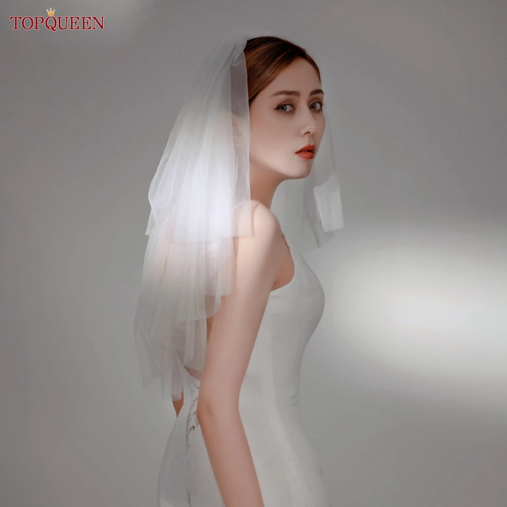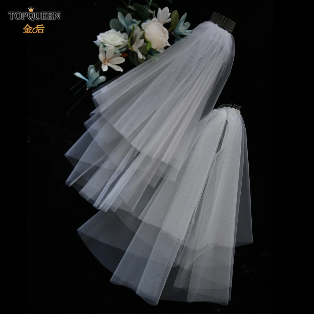 TOPQUEEN V28 красивая элегантная Фата невесты с обрезанным краем двухслойная белая слоновая кость свадебный Тюль с расческой для женщин 2021 горячая распродажа