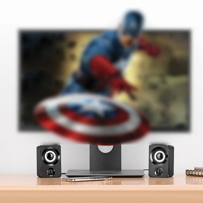 [Богатый и сильный стереозвук] Встроенный два громкоговорителя диафрагмы и сабвуфер мультимедиа колонки, ноутбук USB колонки обеспечивают чистый богатый и сильный стерео звук для вашего компьютера, превратите ваш настольный компьютер или ноутбук в конечную звуковую систему. Эти компьютерные колонки с питанием от USB наполнят комнату музыкой, фильмами или компьютерными играми.