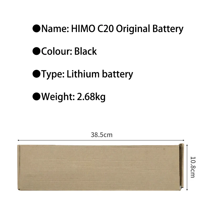 ● Название: Оригинальная батарея HIMO C20 ● Цвет: черный ● Тип: литиевая батарея ● Вес: 2,68 кг ● Стандартное напряжение: 36 В ● Емкость аккумулятора: 10 Ач ● Напряжение зарядки: 42 в