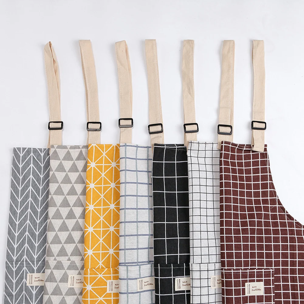 Регулируемый сетчатый фартук без рукавов из хлопка и льна для кухни и кухни