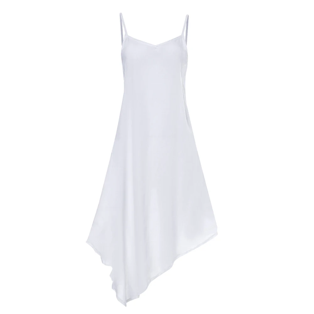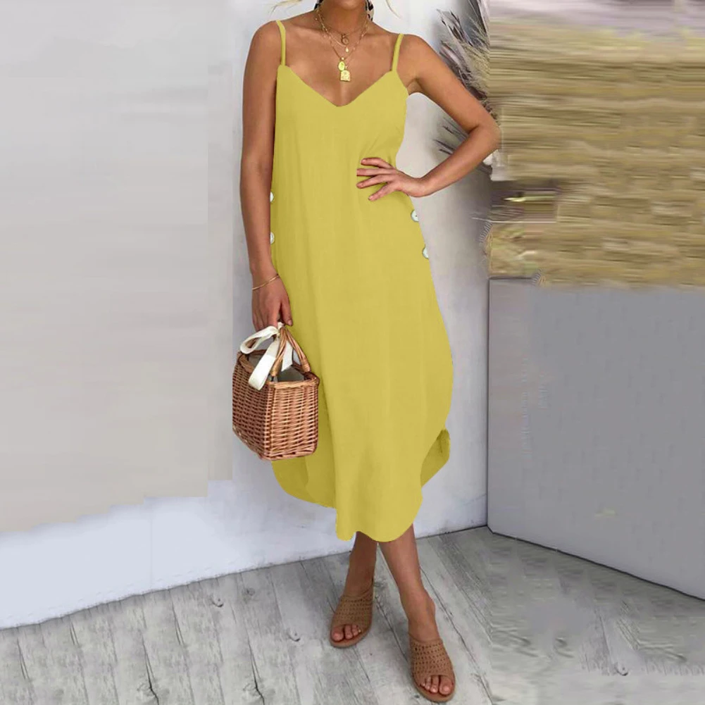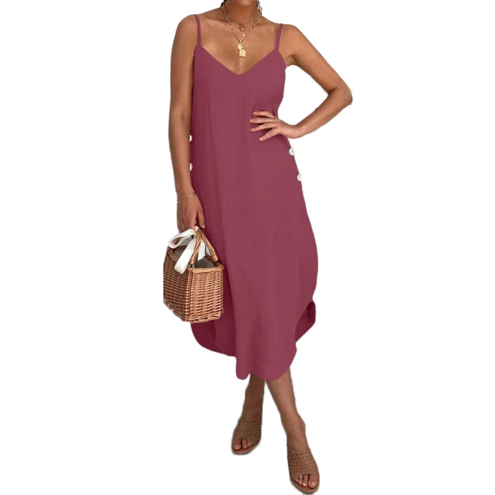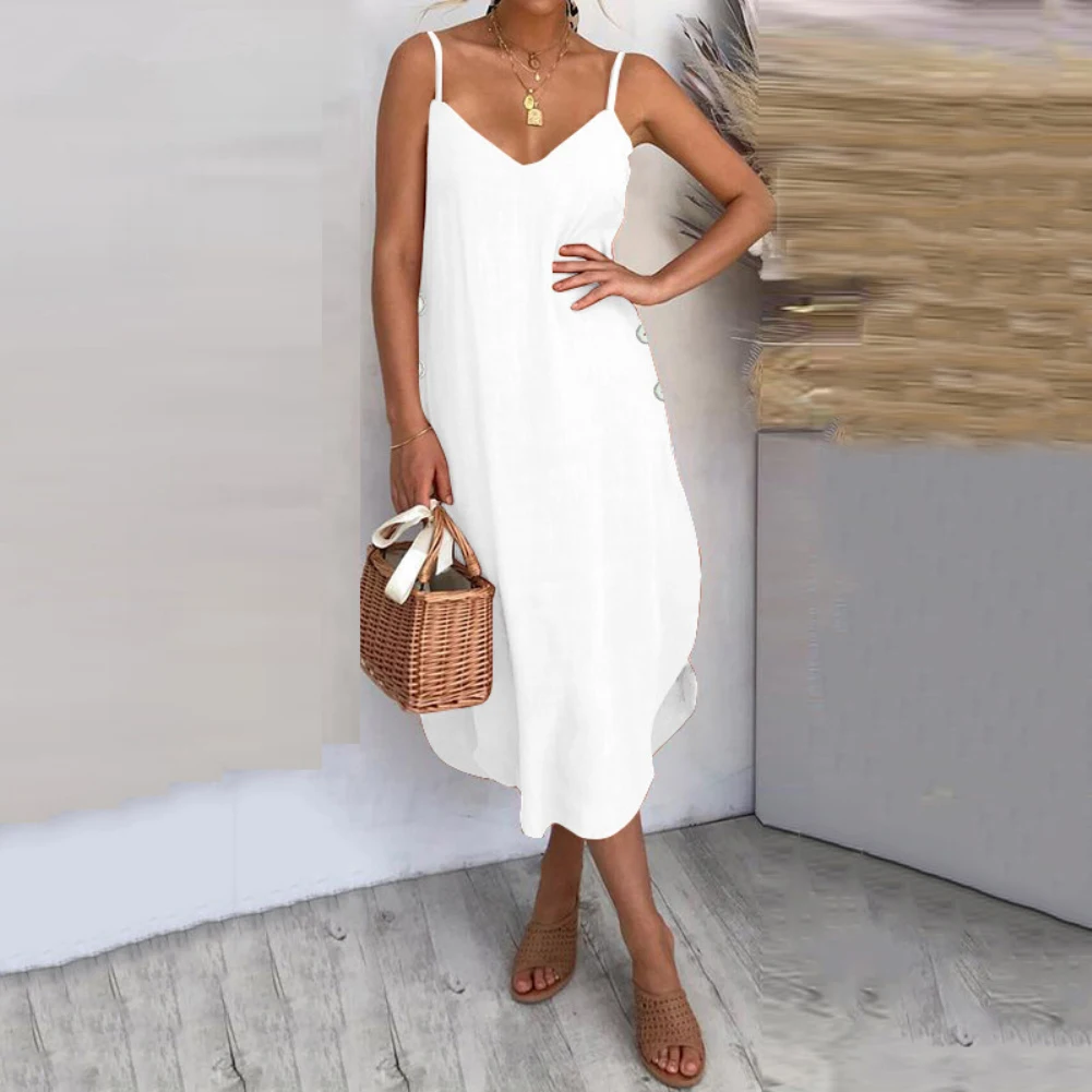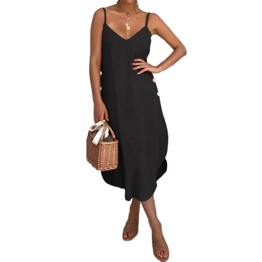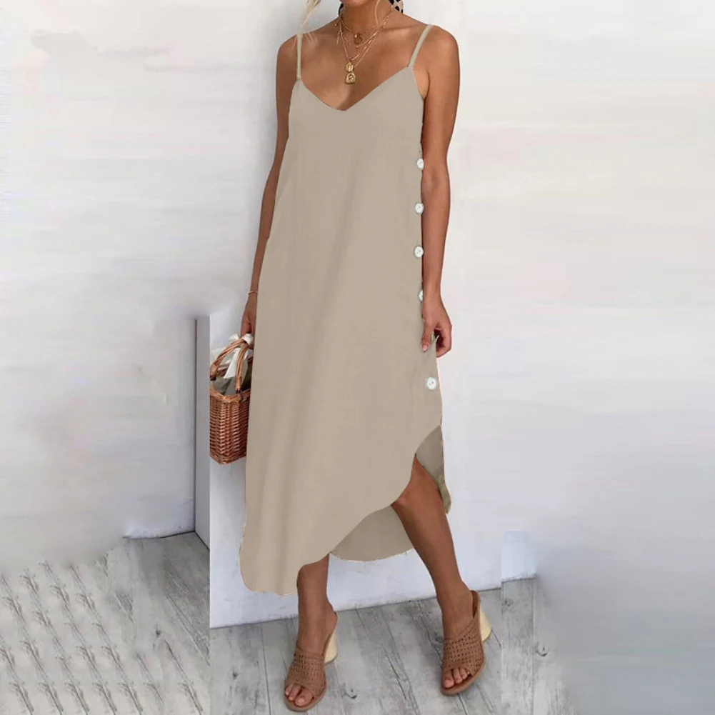 Новинка 2020, женское S-4XL, сексуальное Повседневное платье на бретельках, с пуговицами, разрезом, асимметричным подолом, миди, платья на бретельках, женское летнее пляжное платье для вечеринки