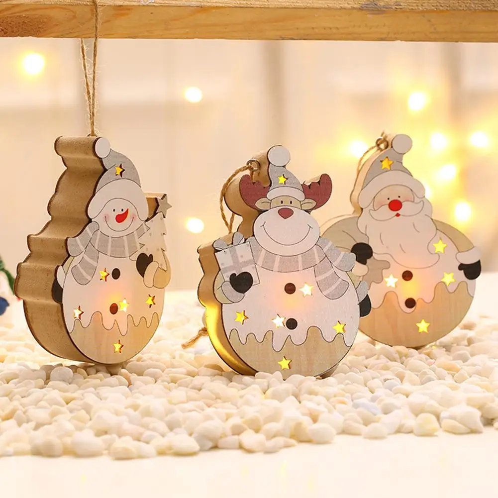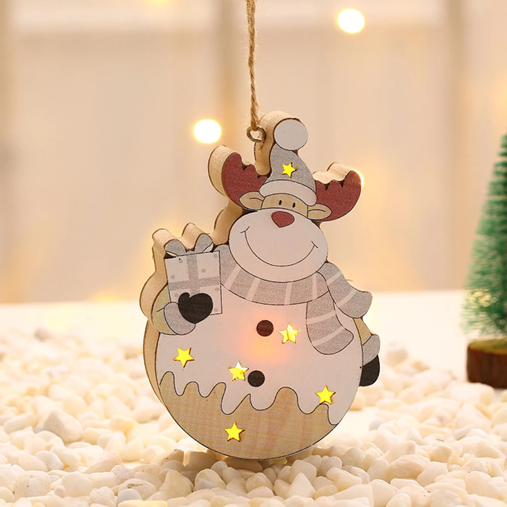 Скандинавский Деревянный Санта Клаус снеговик лося светодиодный светильник подвесное украшение Рождественский Декор