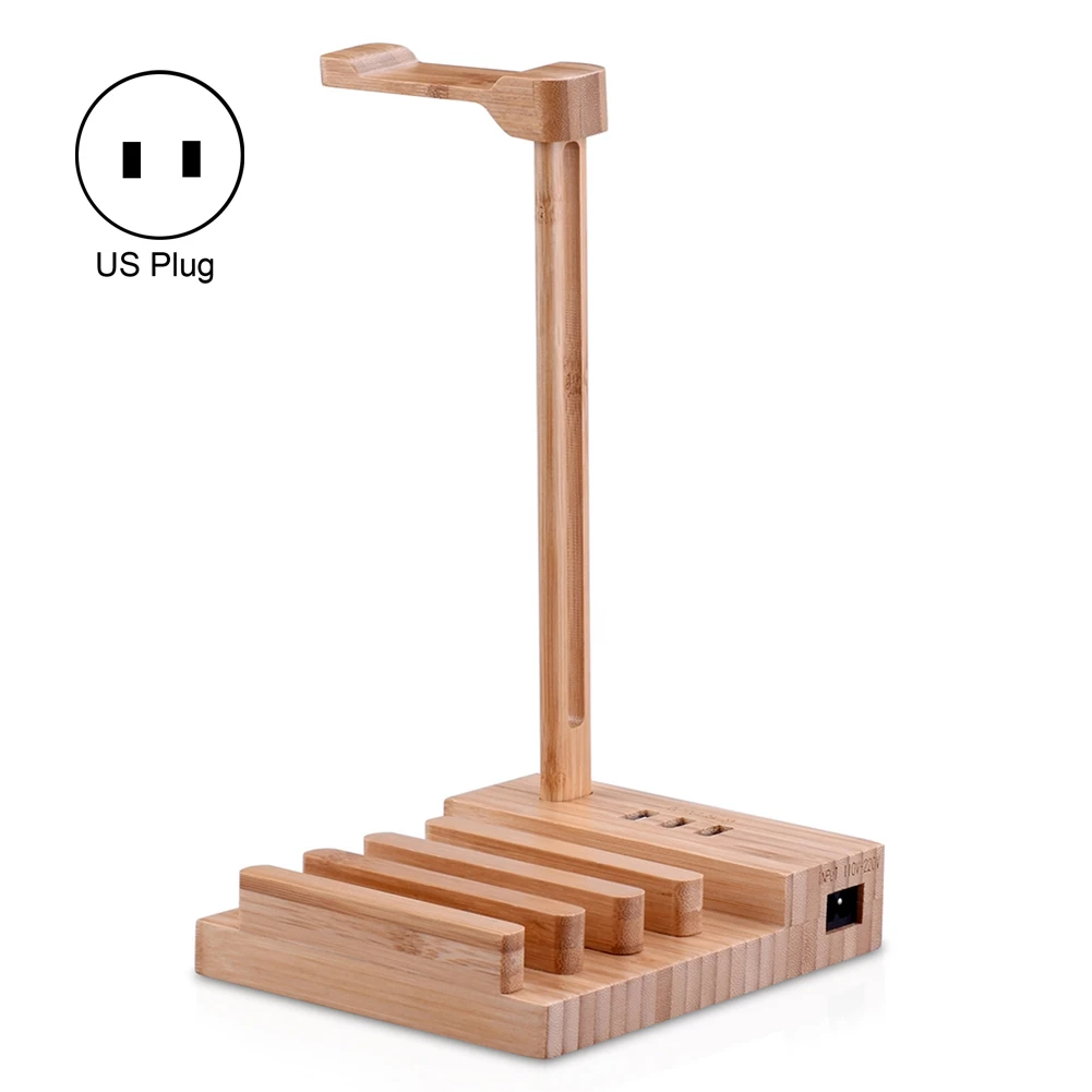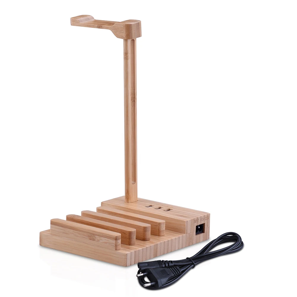 Деревянный Настольный 3 порта гарнитура Вешалка Стеллаж для хранения USB зарядная док-станция