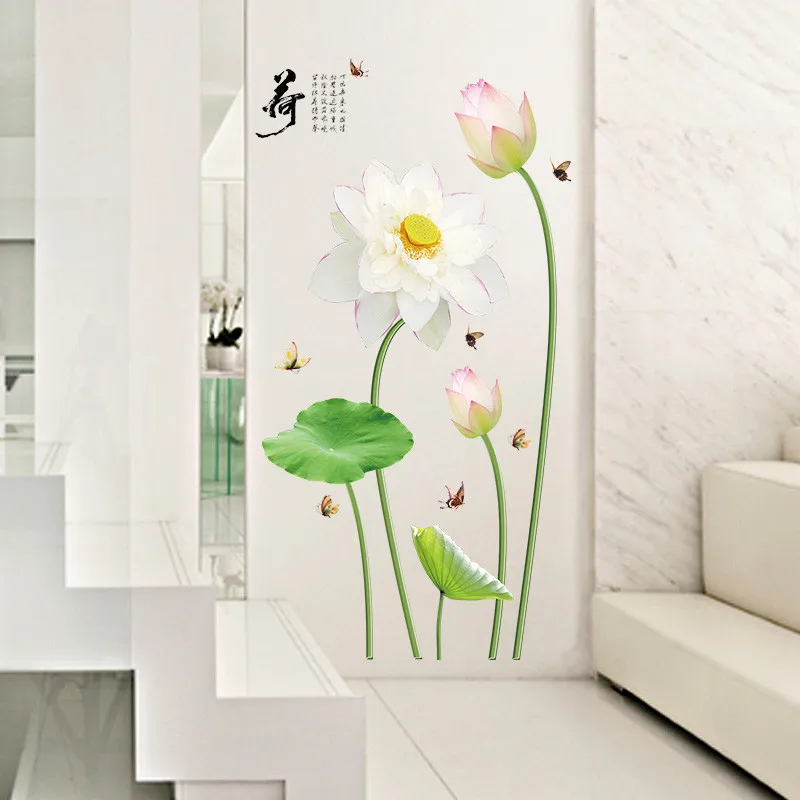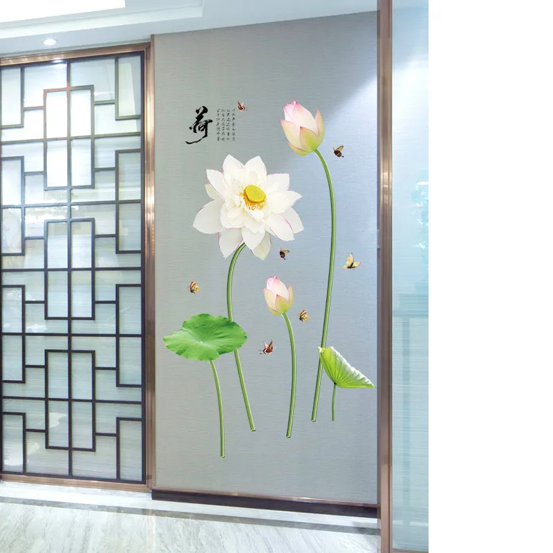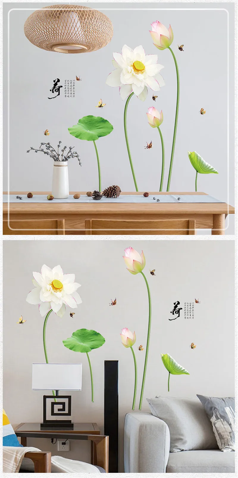 Элегантная Наклейка на стену в виде лотоса, 3D декор, настенные наклейки в китайском стиле, Настенные обои для крыльца, гостиной, фон, сделай сам, Настенная Наклейка s